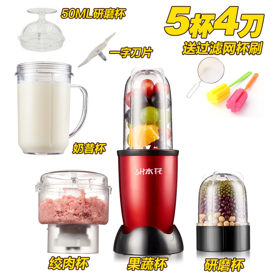 (Усиленный двигатель) 5 чашек и 4 ножа, бесплатная щетка для чашки фильтра
