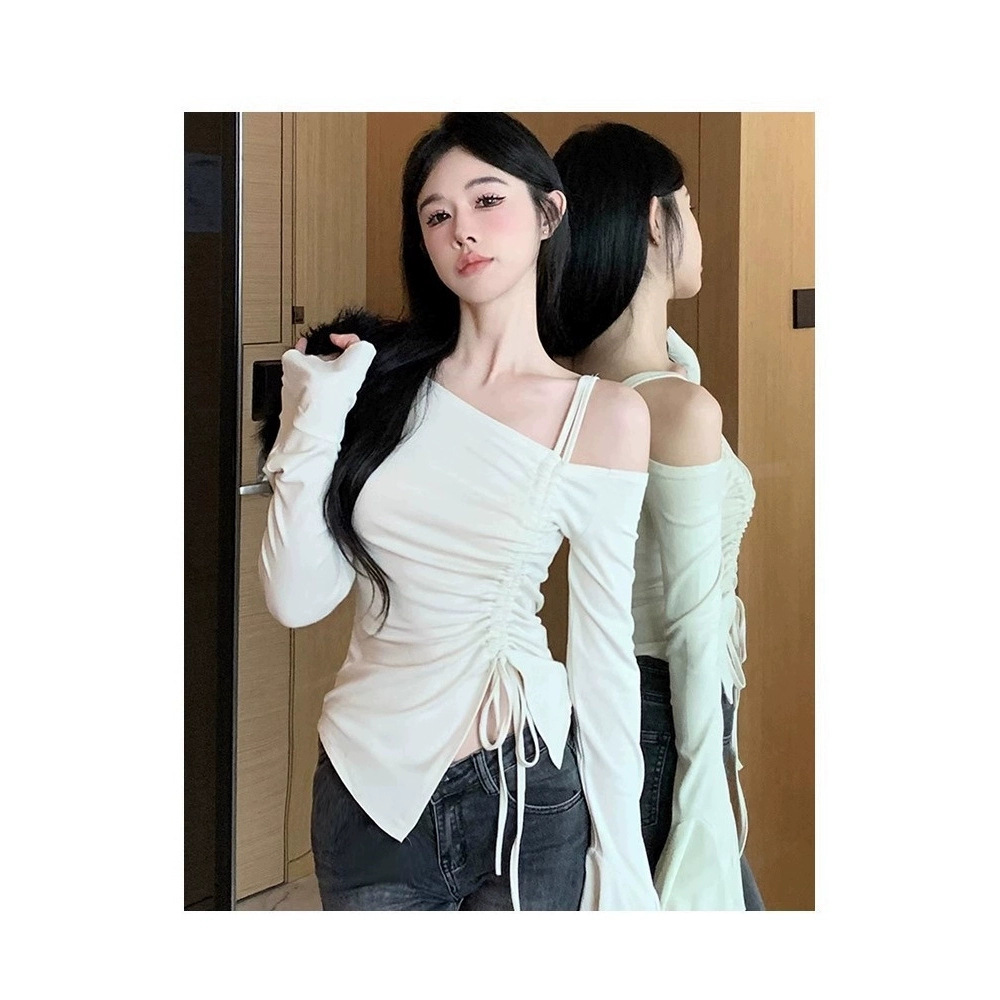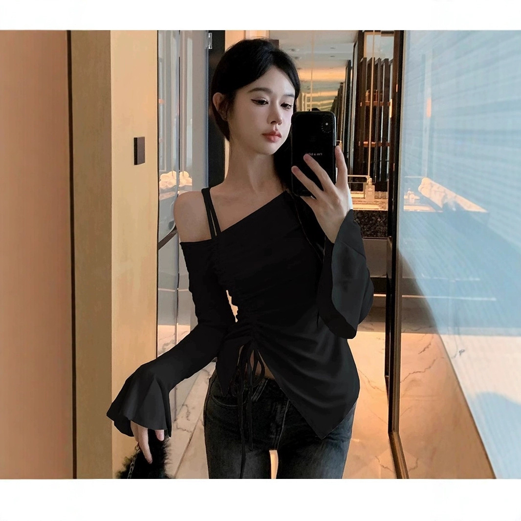 Главная страница > Чистый ветер нерегулярная мода горячая девушка облегающие топы для женщин весной и осенью рукава лотоса для талии с открытыми плечами для нижней рубашки
