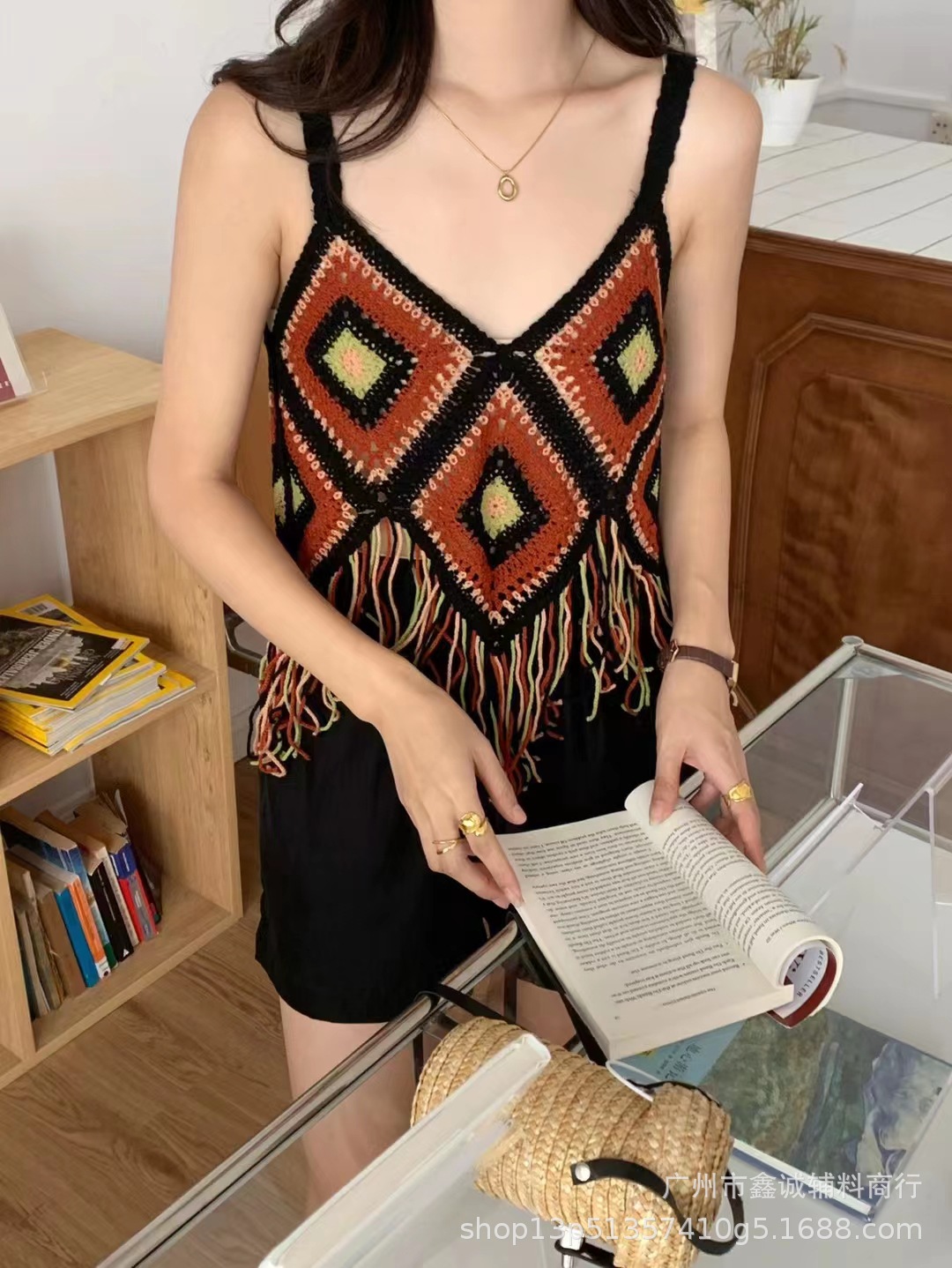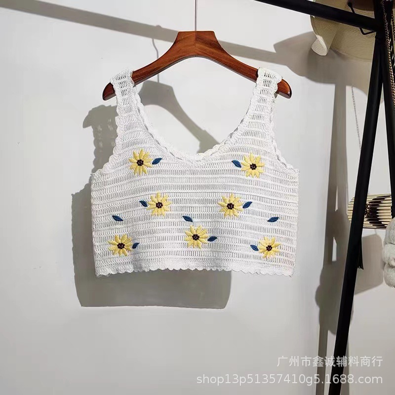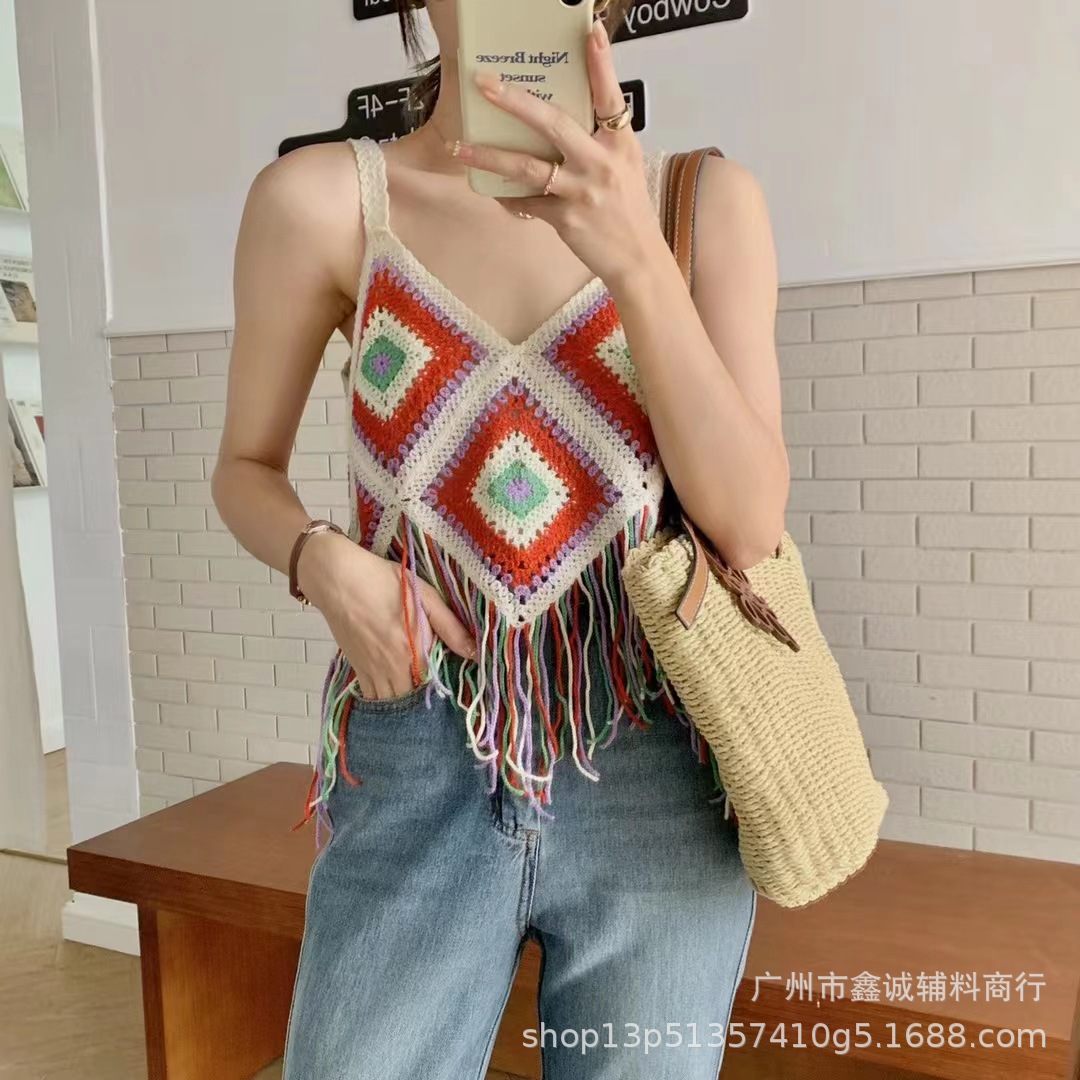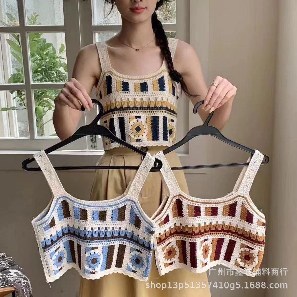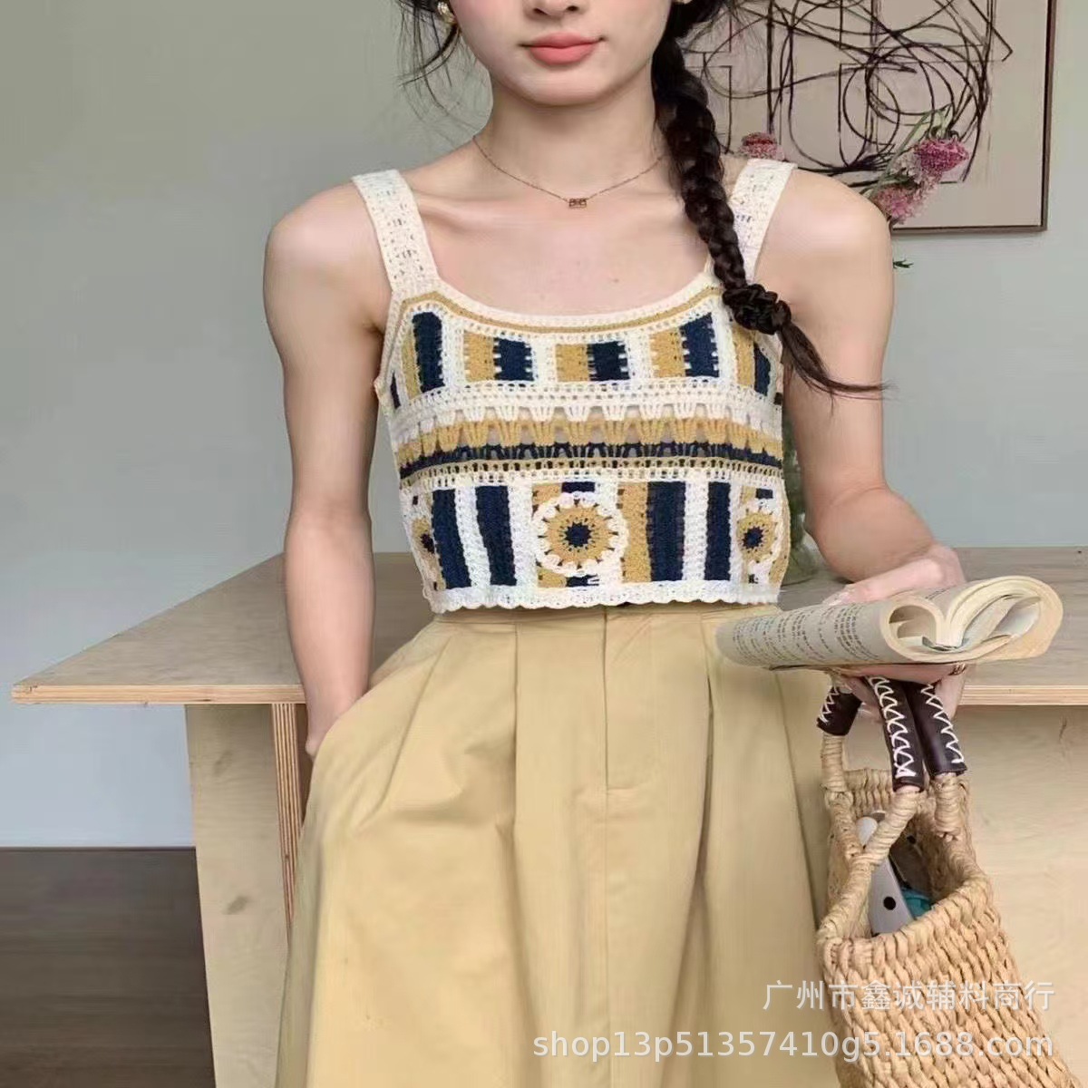 Главная страница > Трансграничный европейский и американский Контрастный ЦВЕТНОЙ слинг с вышивкой, женский сексуальный вышитый полый ромб, универсальный короткий жилет, Внешний Топ