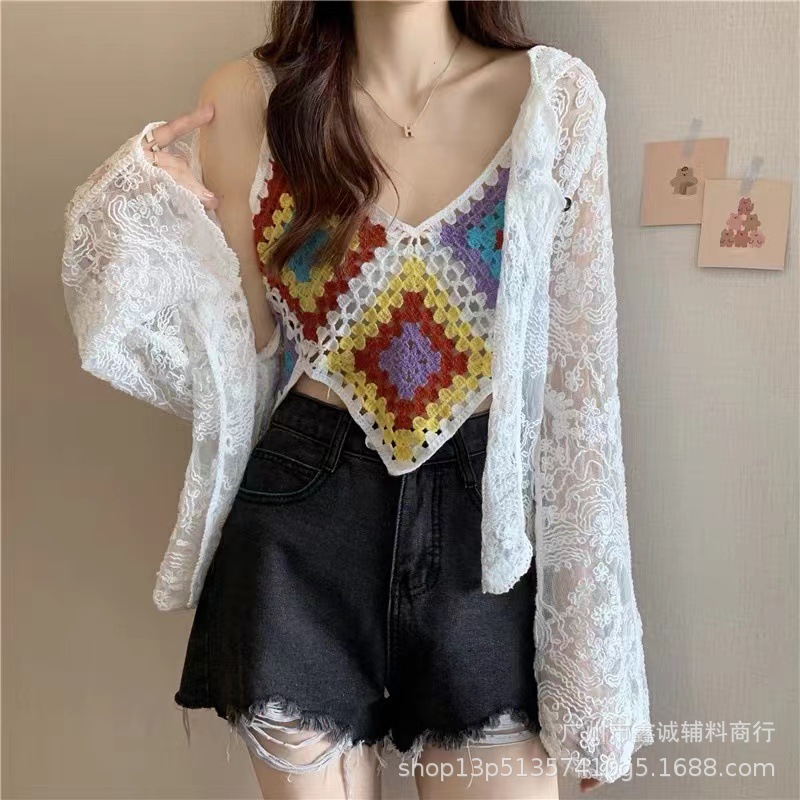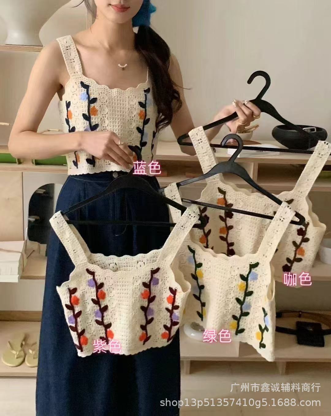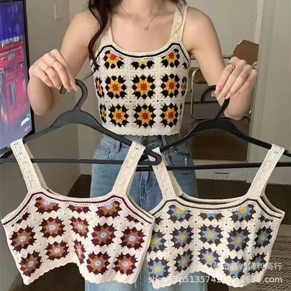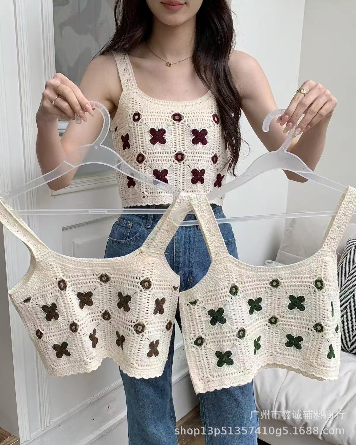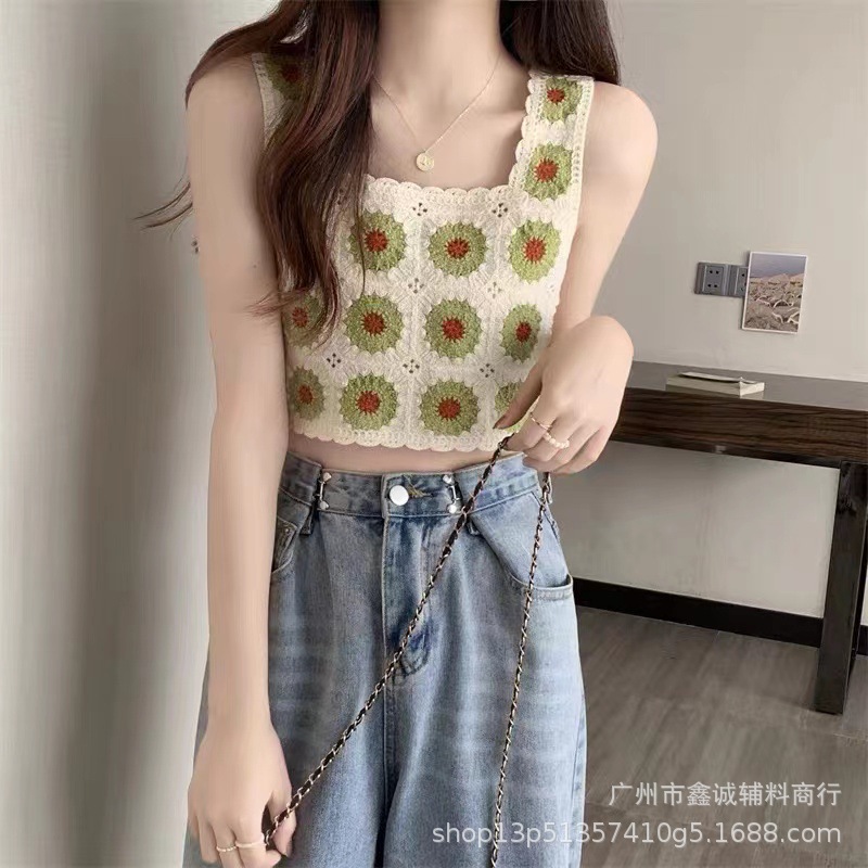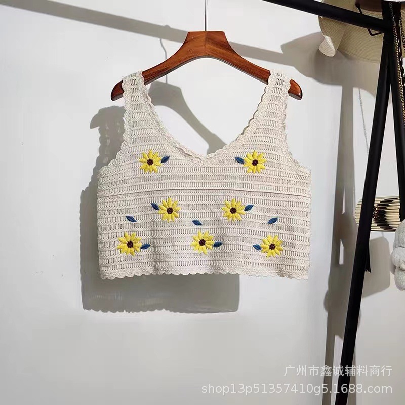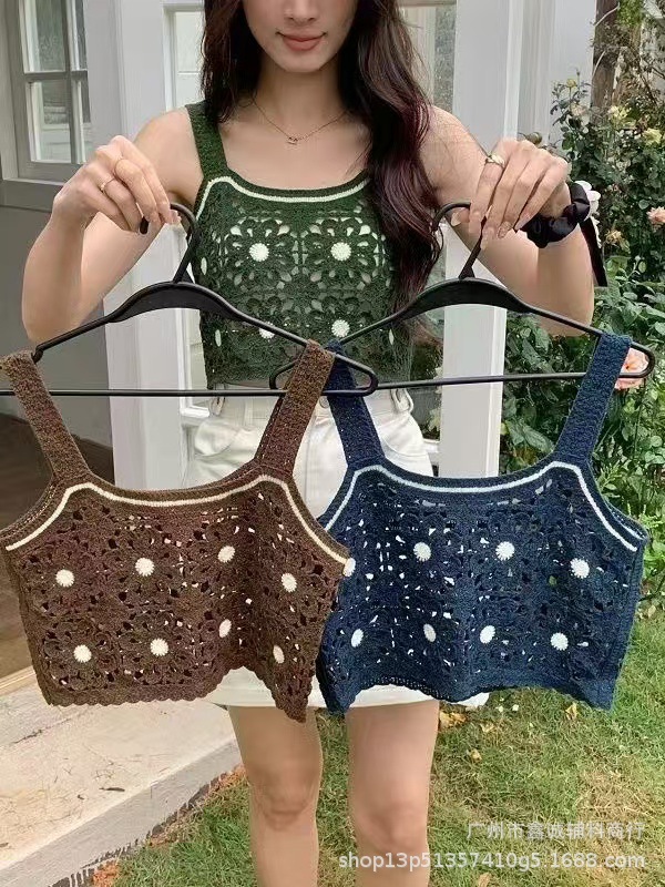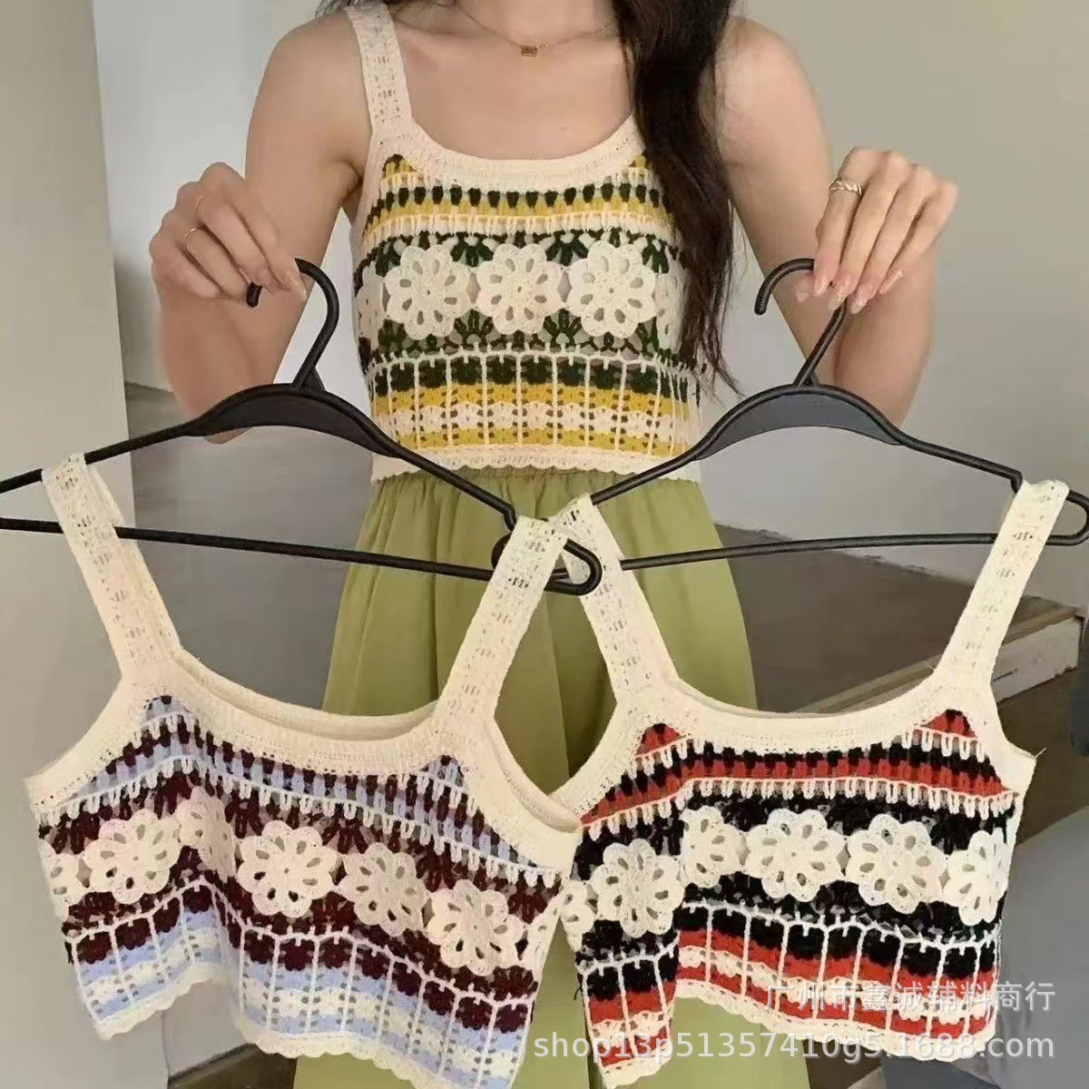 Главная страница > Трансграничный европейский и американский Контрастный ЦВЕТНОЙ слинг с вышивкой, женский сексуальный вышитый полый ромб, универсальный короткий жилет, Внешний Топ