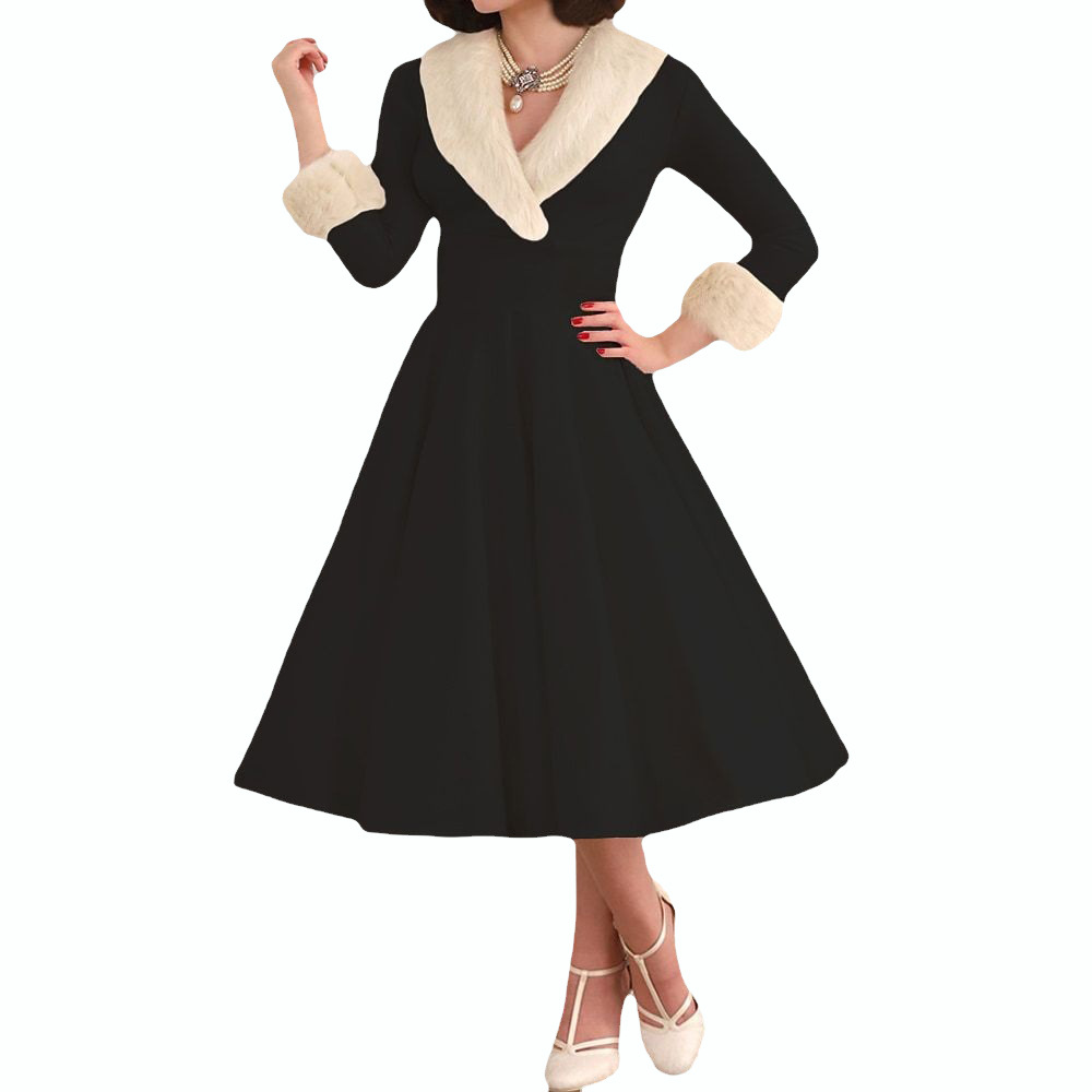 Главная страница > Трансграничное 2021, новое рождественское женское модное сексуальное облегающее платье с длинными рукавами и меховым воротником в Европе и Америке