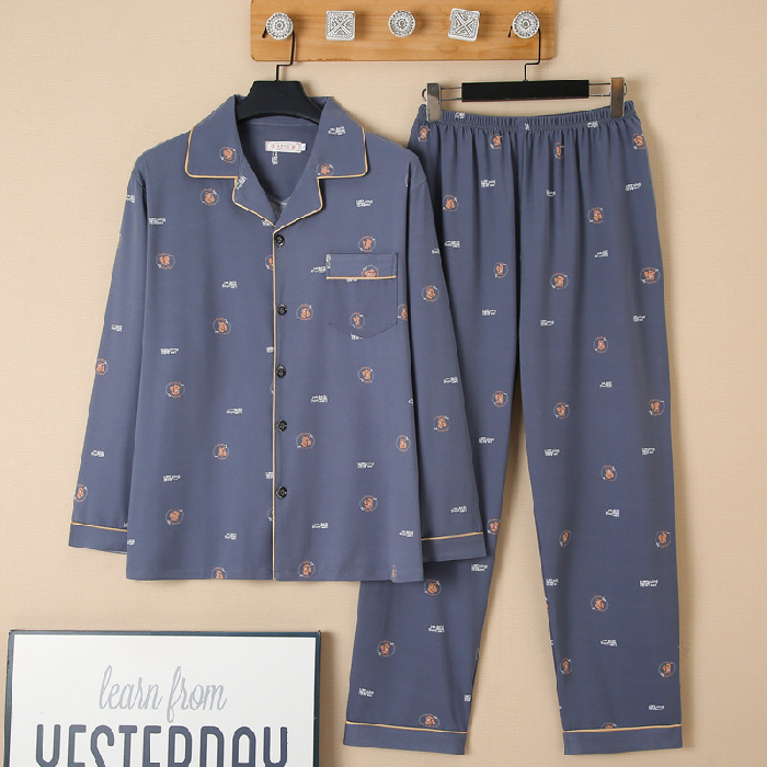 Главная страница > Весенне-осенние пижамы, мужские брюки с длинными рукавами, кардиган, Свободный Летний костюм больших размеров для старого папы, домашняя одежда, костюм