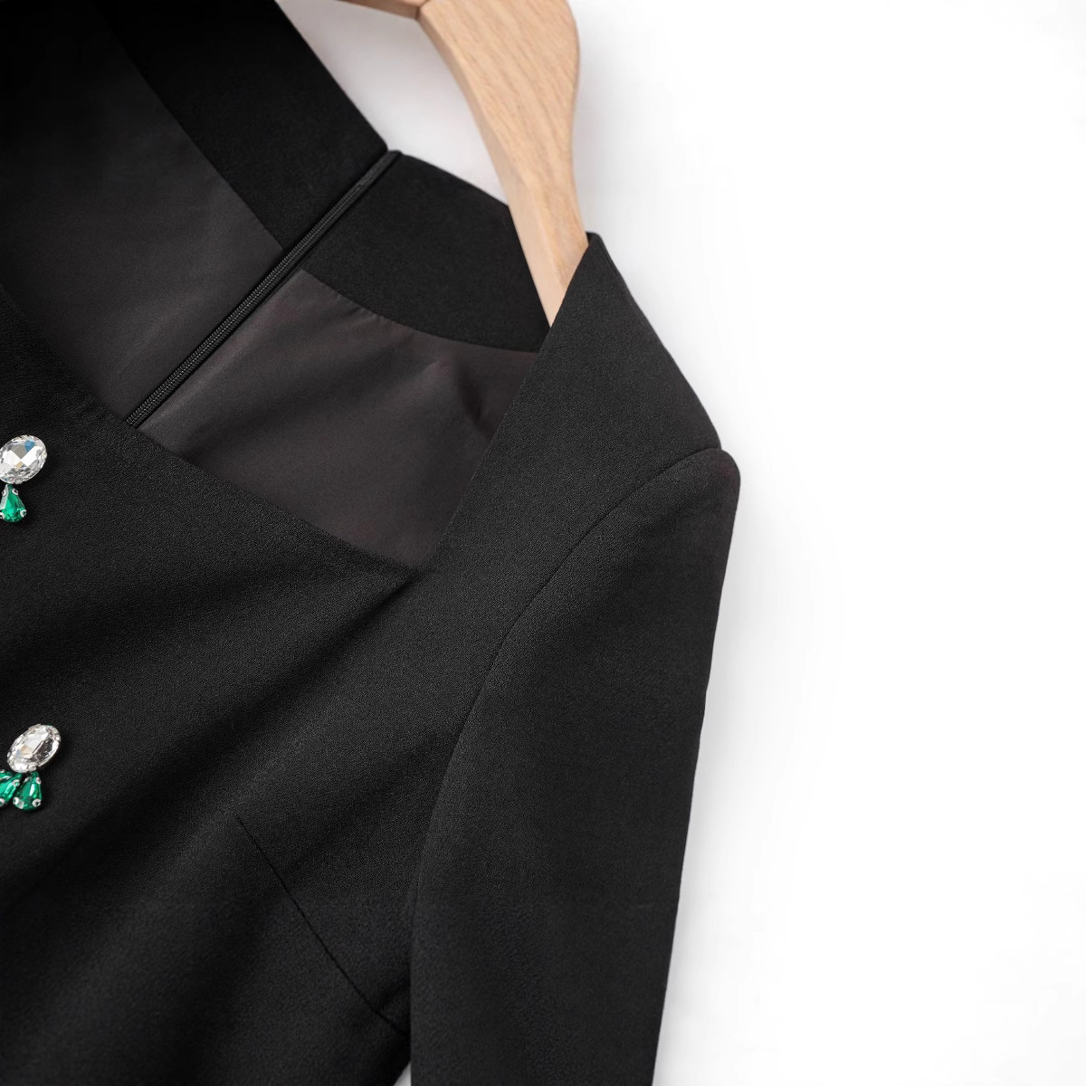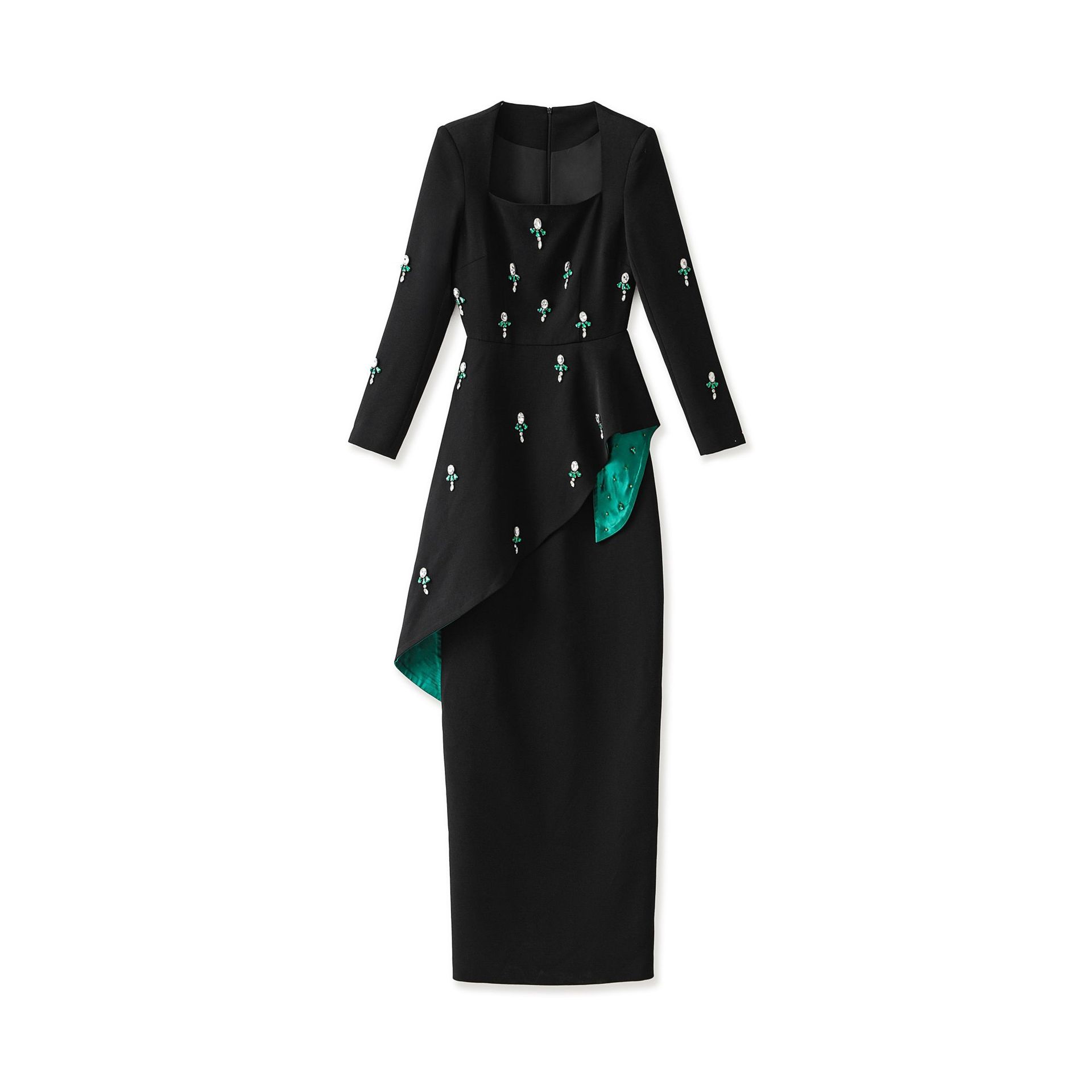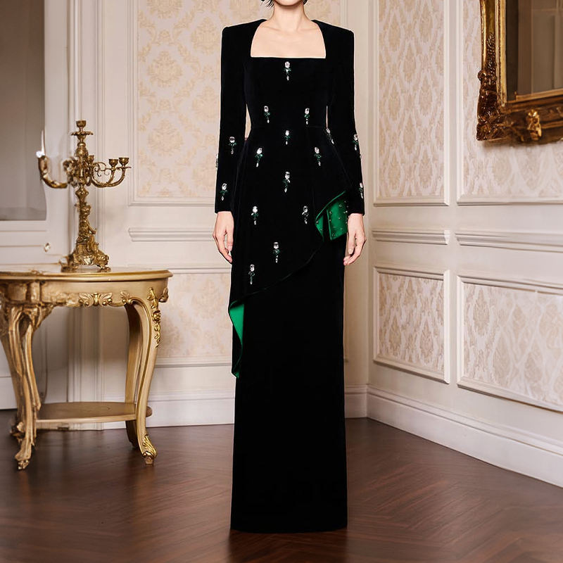 Главная страница > Осень 2025, новое модное элегантное платье трапециевидной формы с длинными рукавами и рюшами, маленькое черное платье оптом на складе.