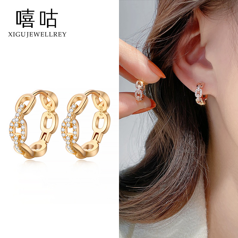 Главная страница > Xi Gu E1492 S999 белый гриб Пряжка новые модные серьги-цепочки нишевый дизайн розовое золото серьги