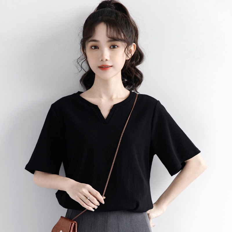 Главная страница > Белая хлопчатобумажная футболка с короткими рукавами летом свободная тонкая с половиной рукава Rs модная маленькая футболка с воробом повседневная нижняя рубашка