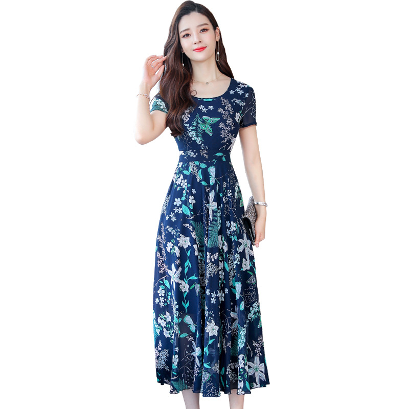 2021 летнее Новое Женское платье с модными рукавами, элегантное свободное приталенное платье с высокой талией и круглым вырезом и принтом
