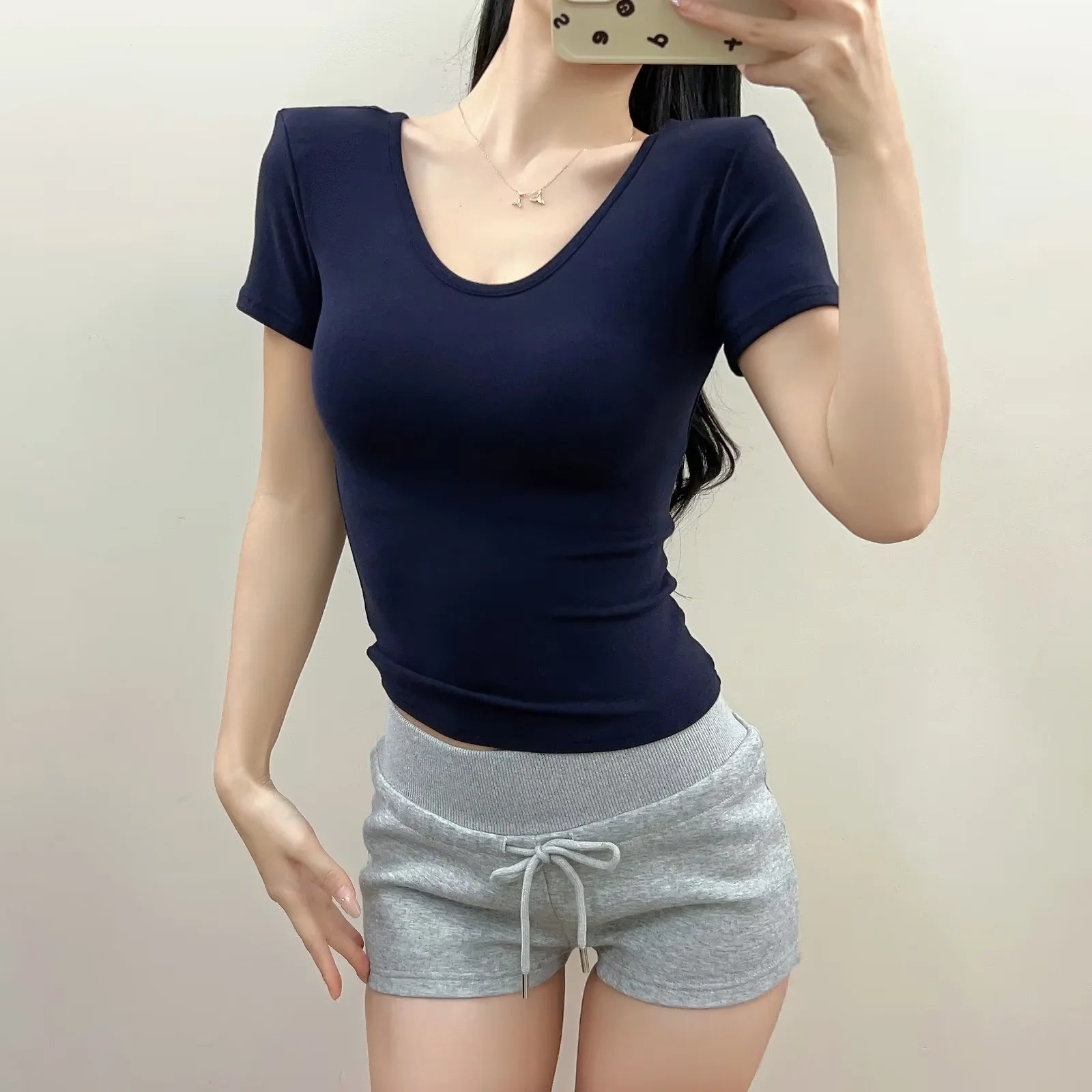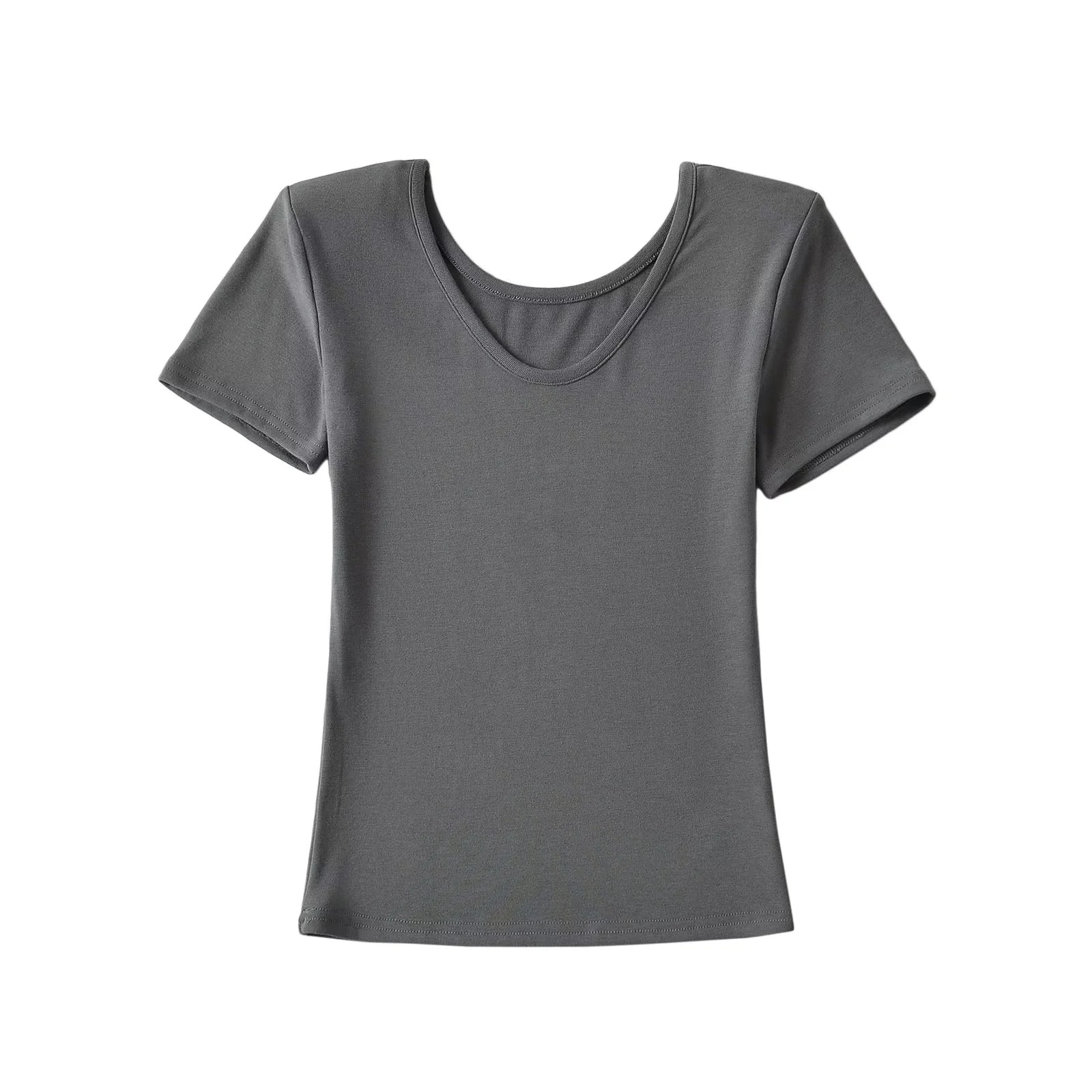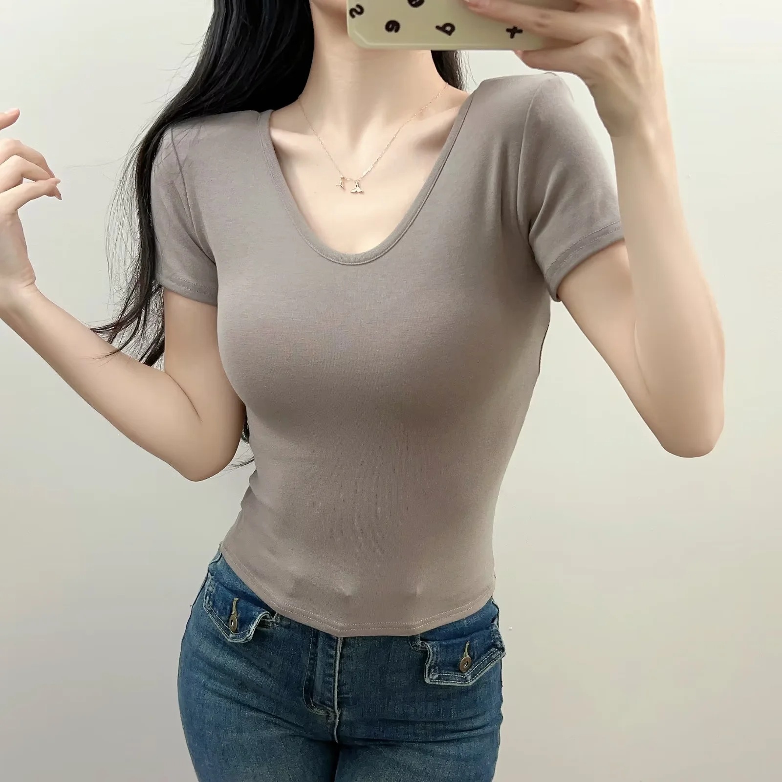 Главная страница > Американская U-образная рубашка с короткими рукавами, женская рубашка с короткими рукавами 2024 летом новая тонкая, тонкая и продвинутая внутренняя рубашка
