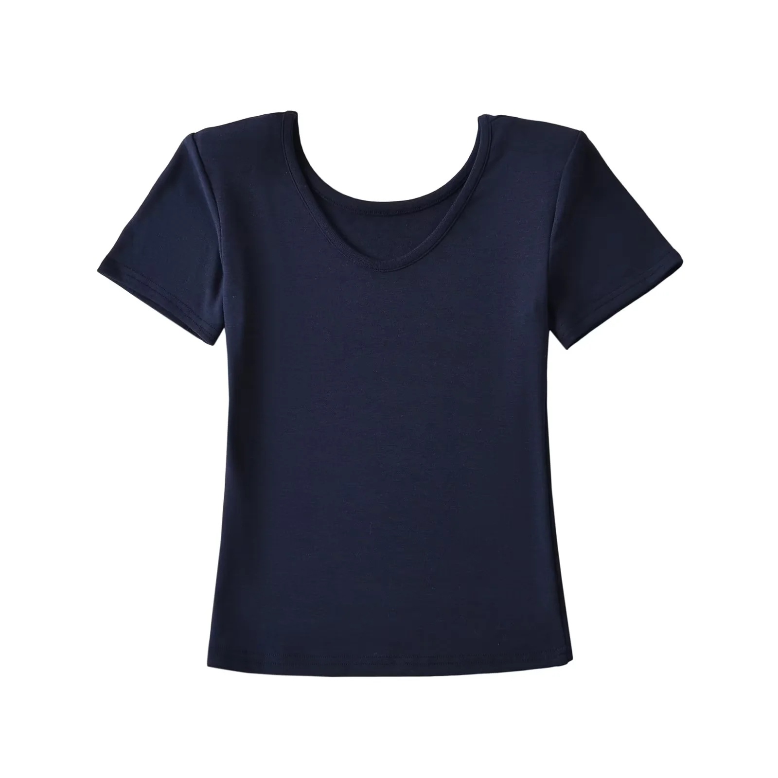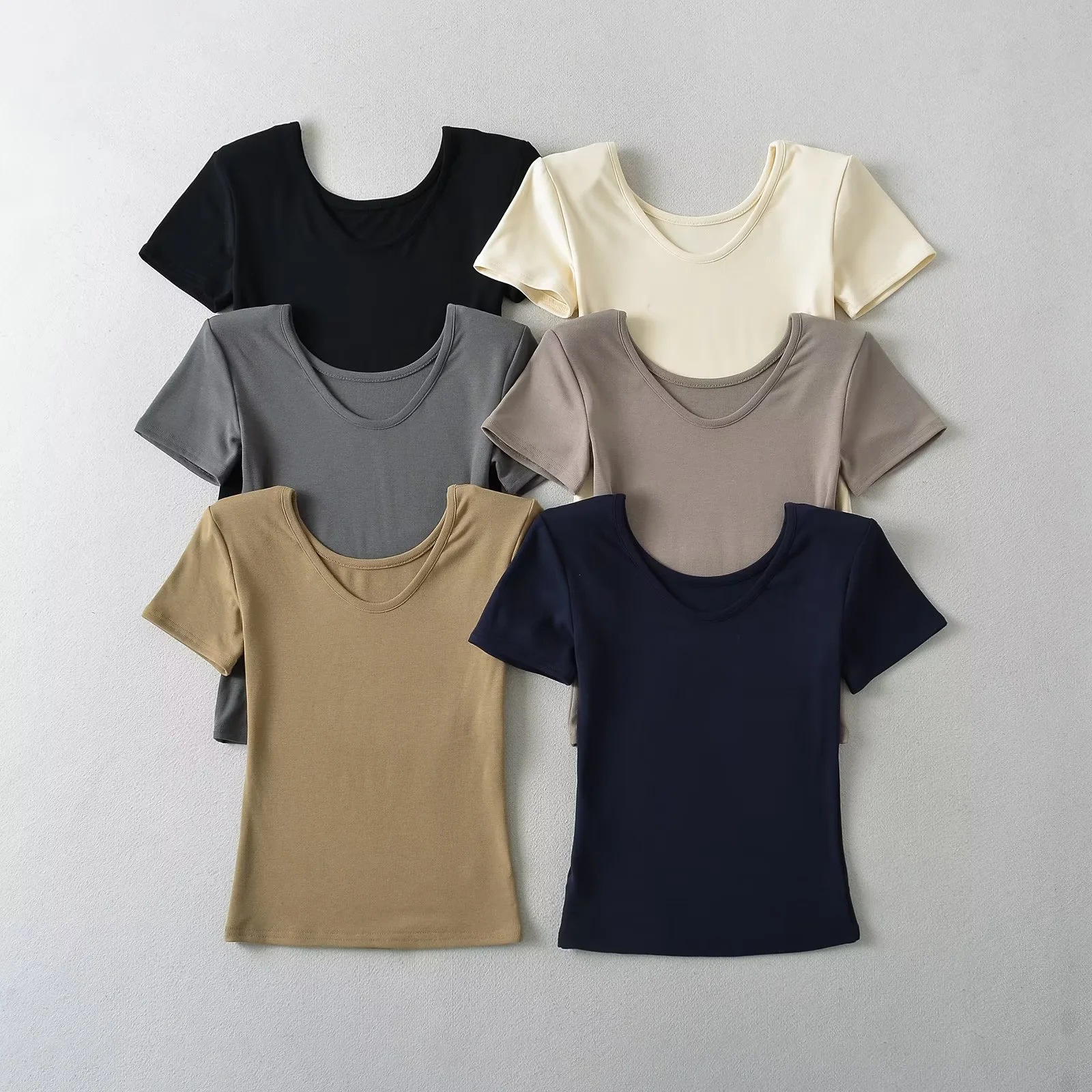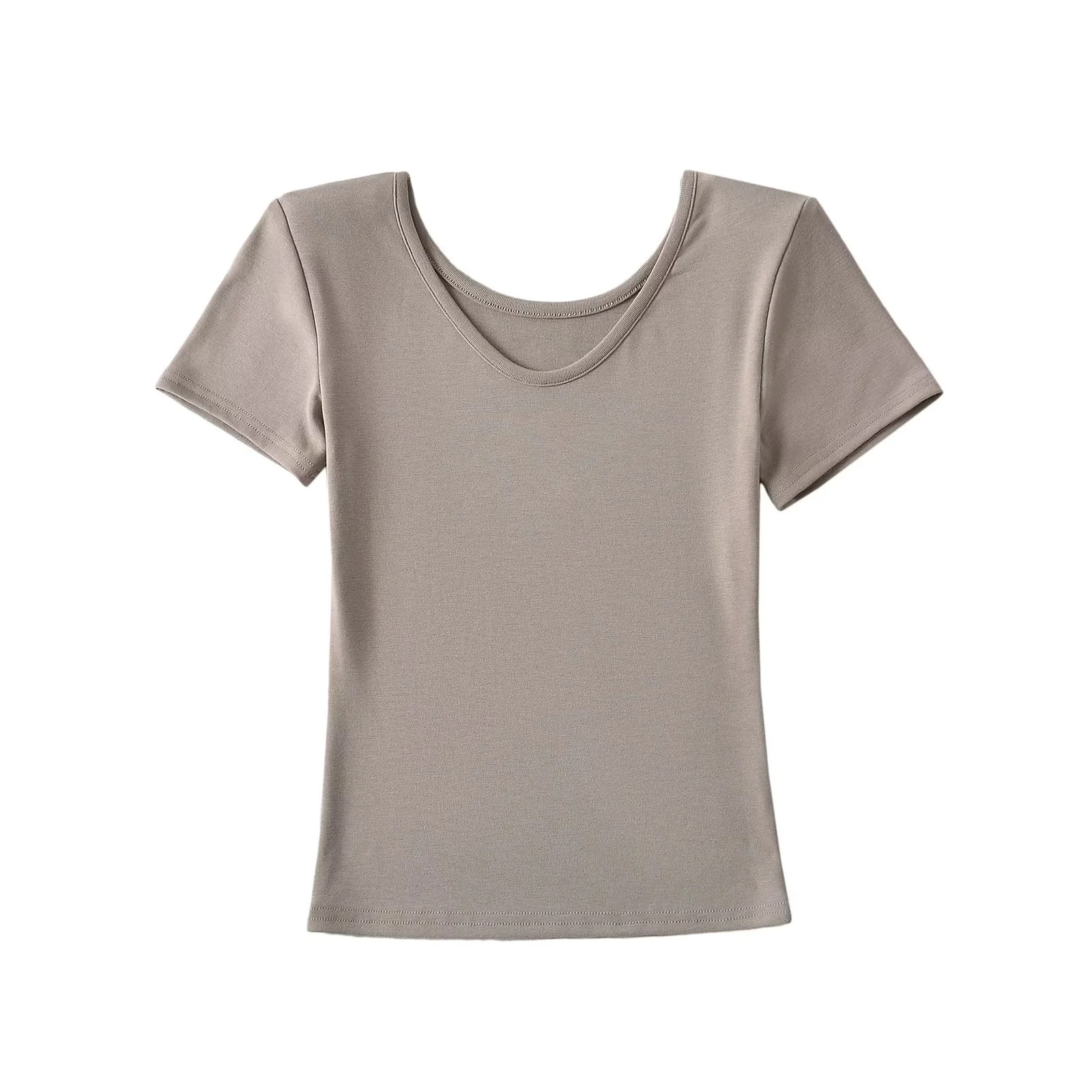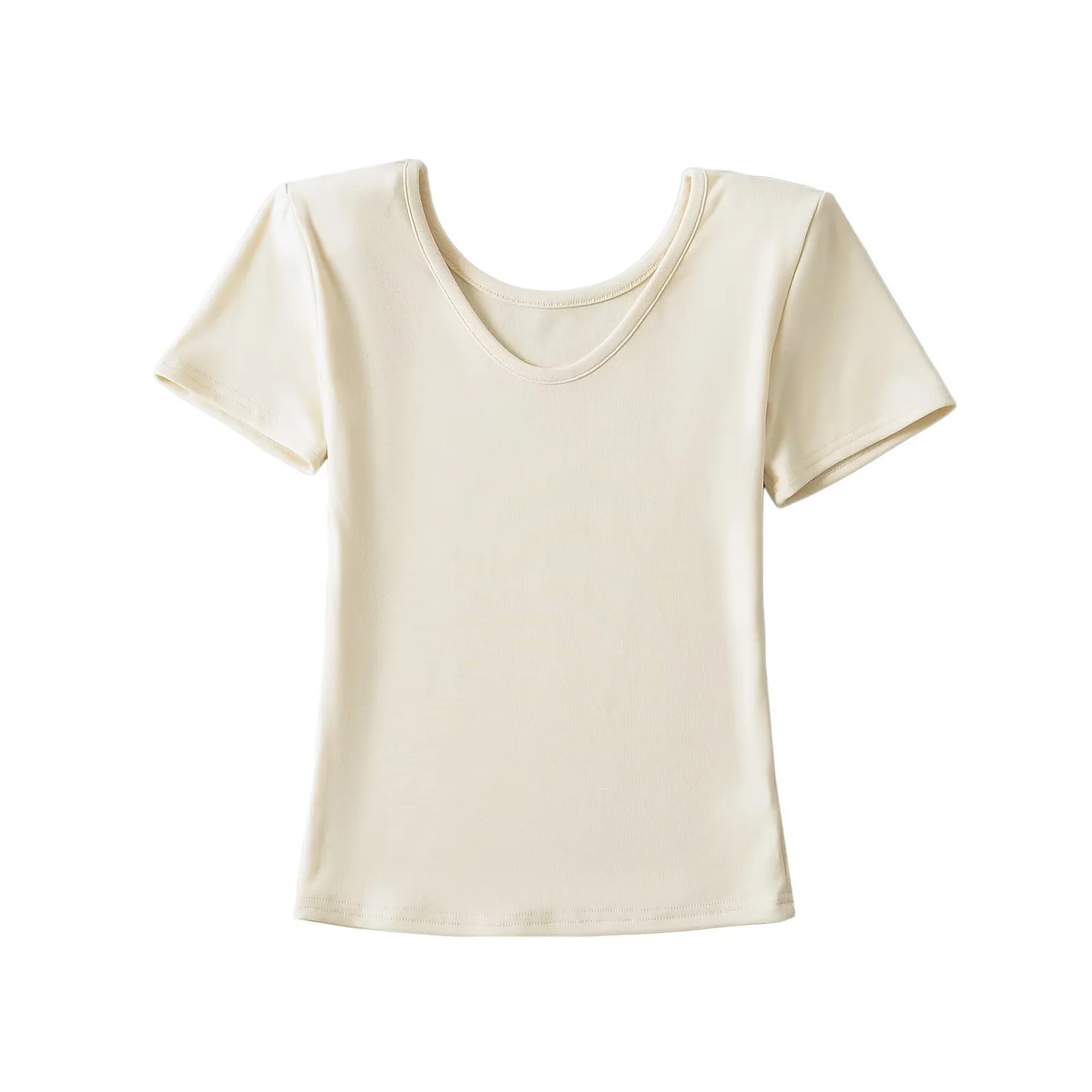 Главная страница > Американская U-образная рубашка с короткими рукавами, женская рубашка с короткими рукавами 2024 летом новая тонкая, тонкая и продвинутая внутренняя рубашка