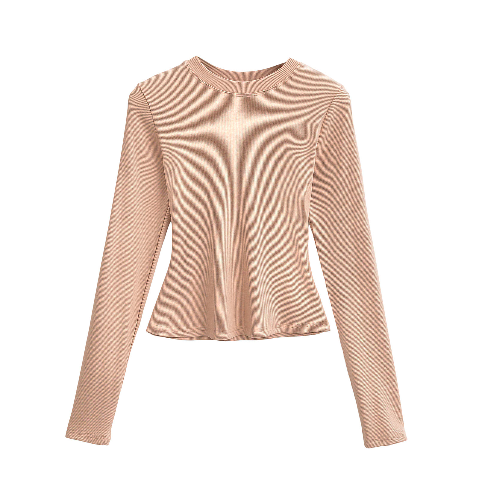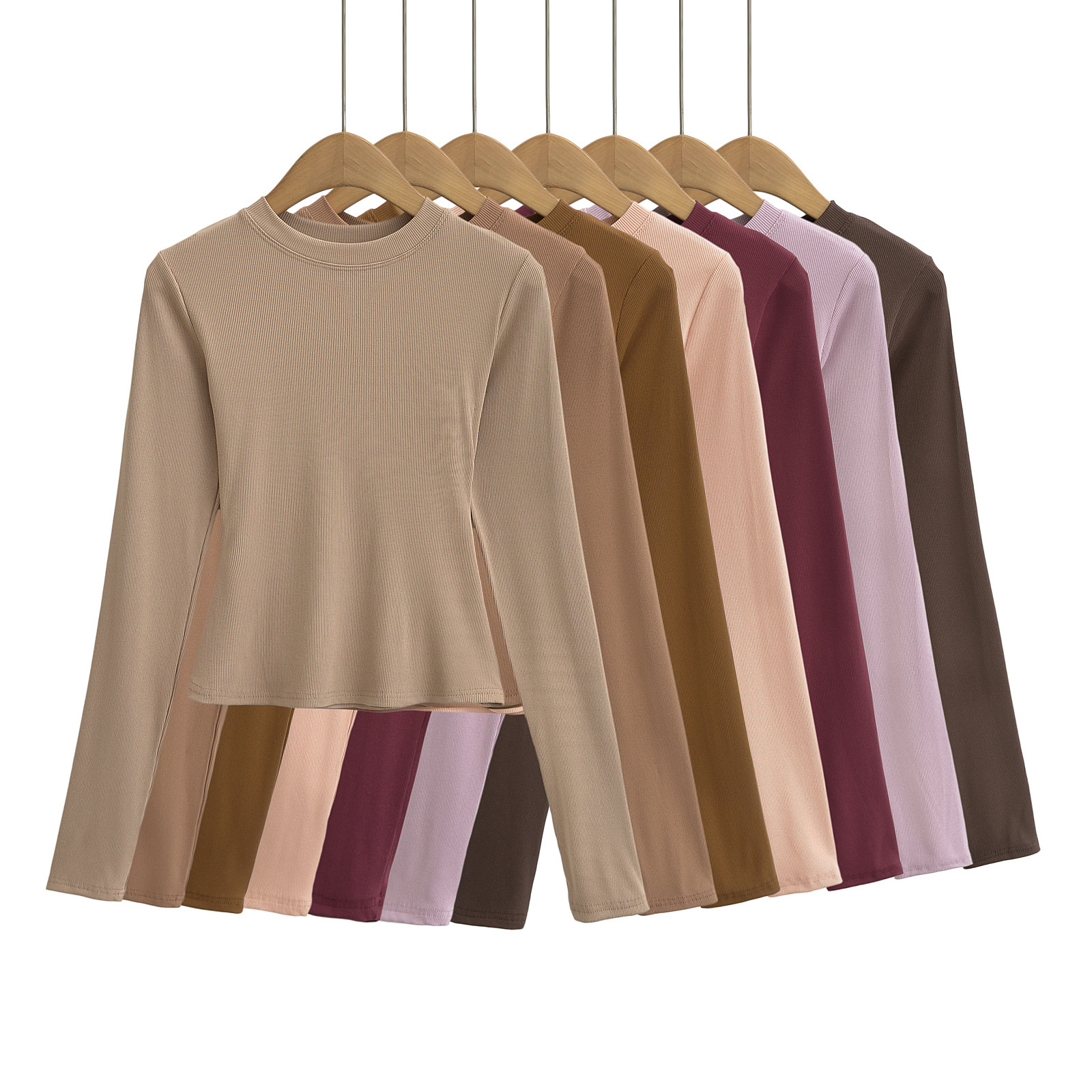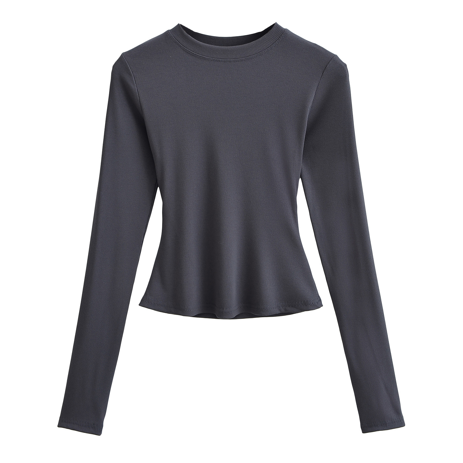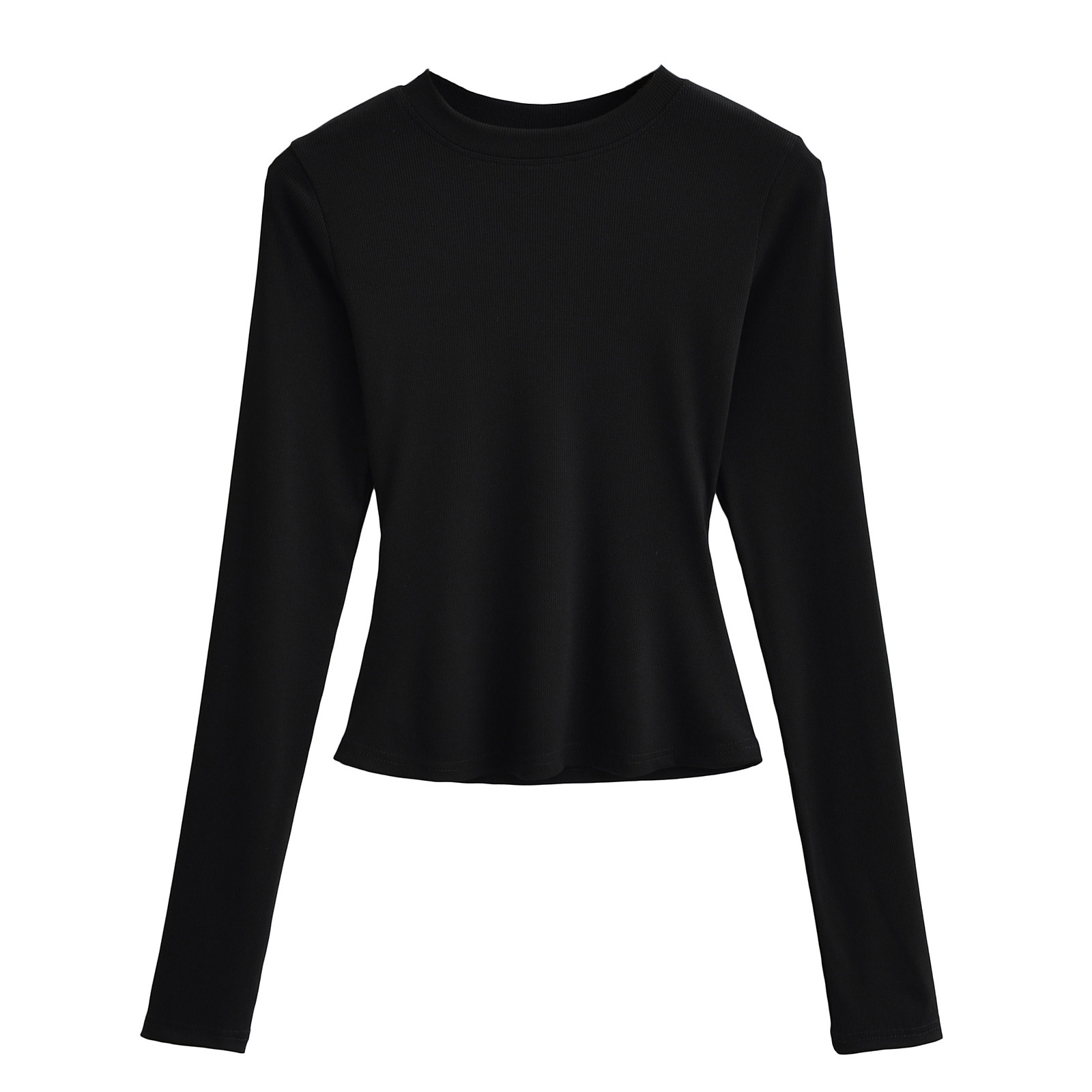 Главная страница > Облегающая рубашка с круглым вырезом Kardashian Kendou, Женская Весенняя обтягивающая футболка с длинным рукавом, облегающая Однотонная футболка европейского и американского цвета