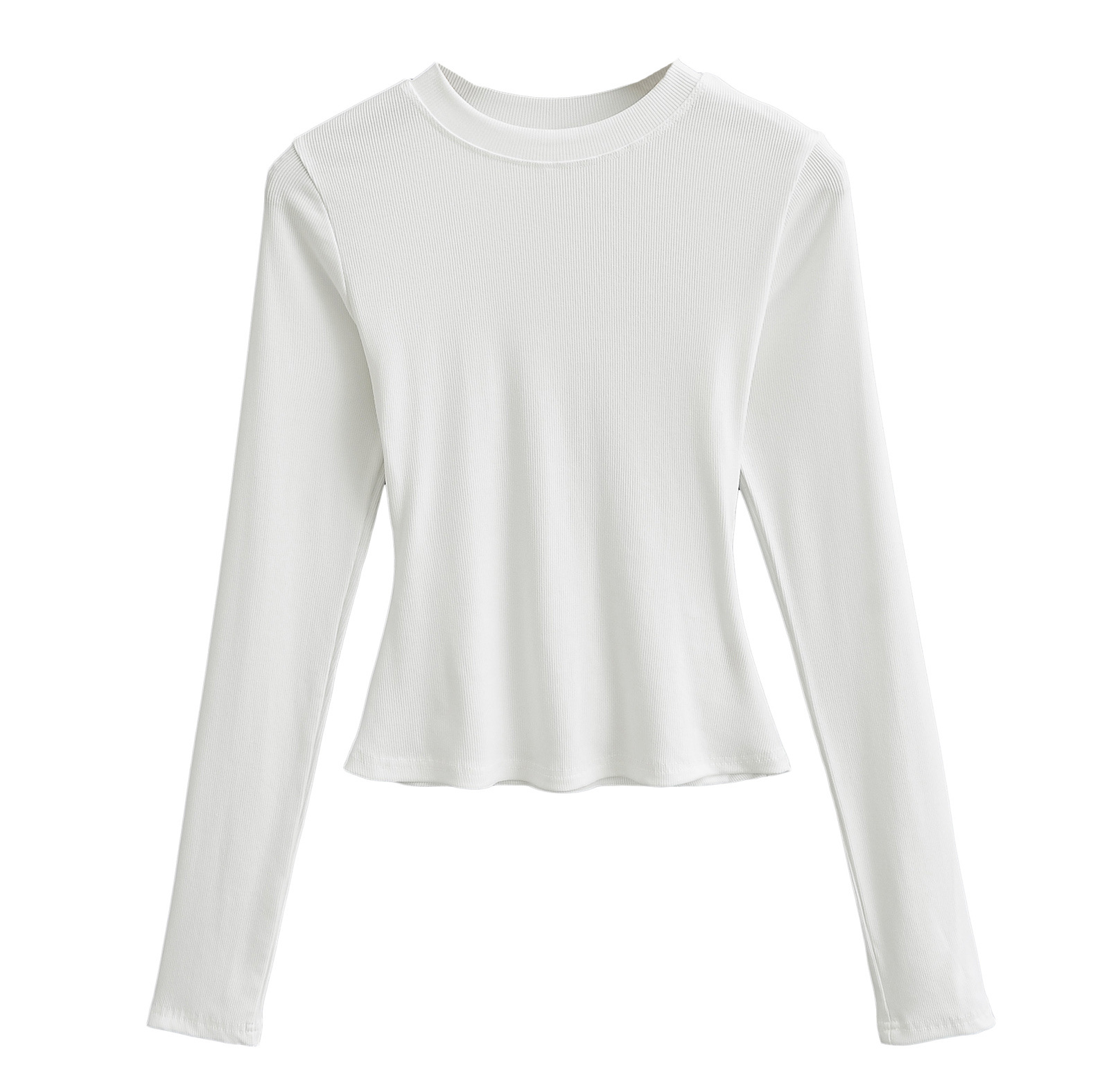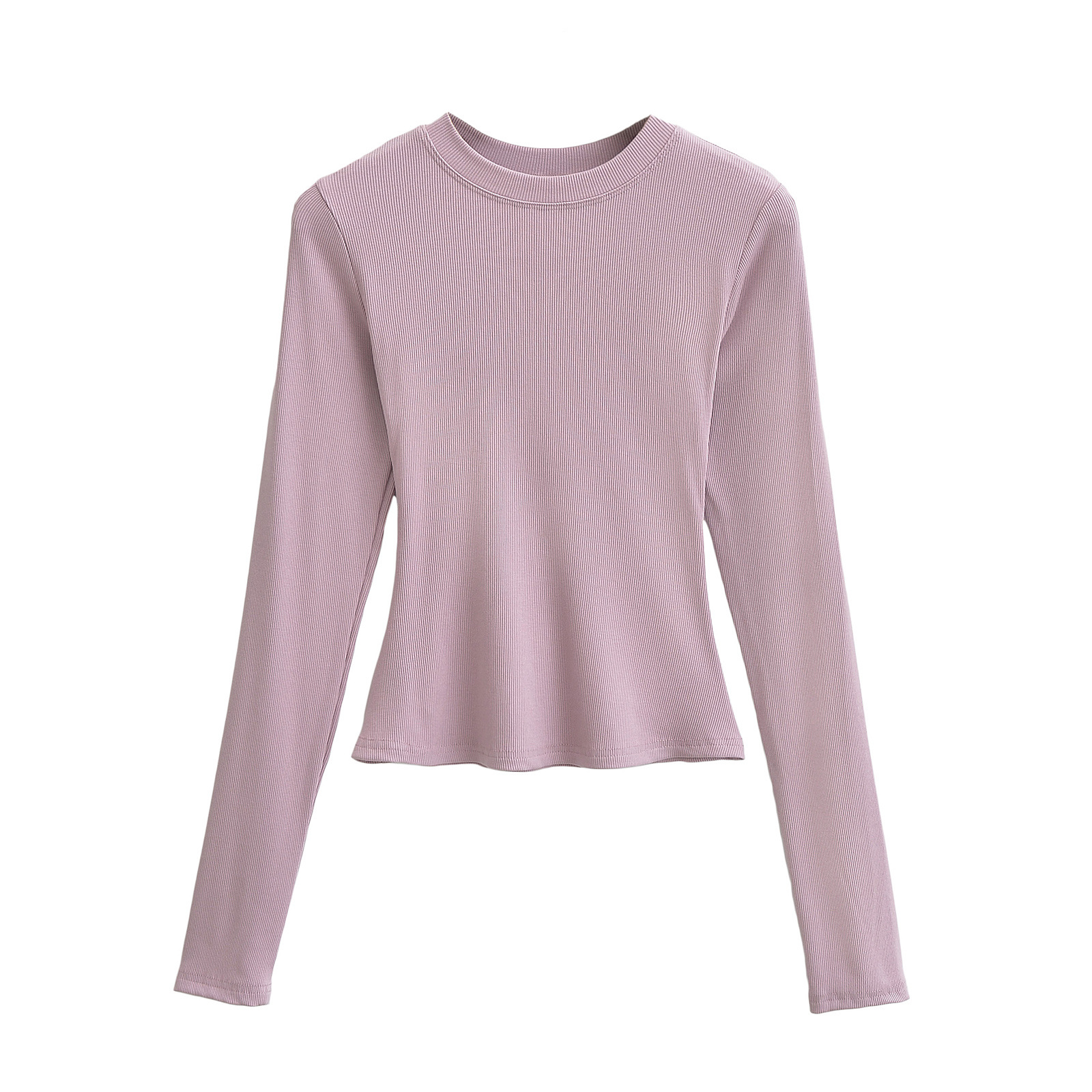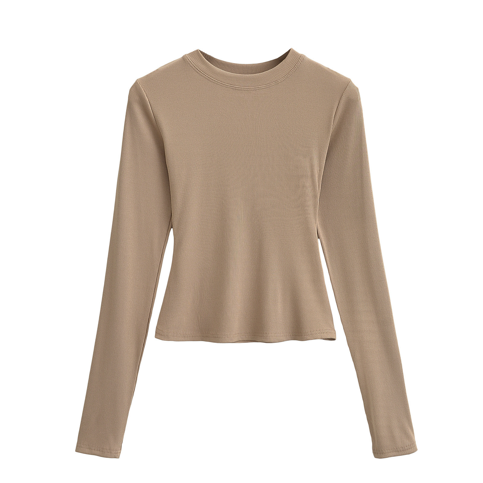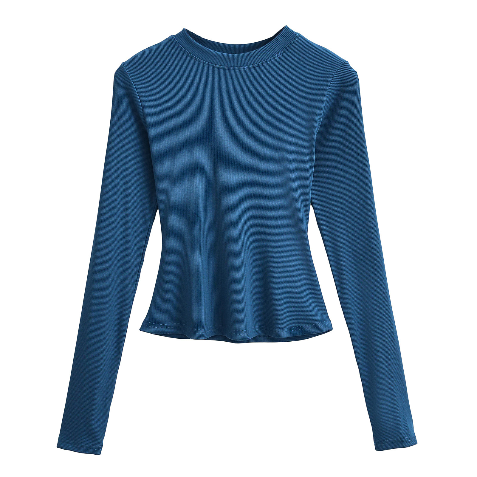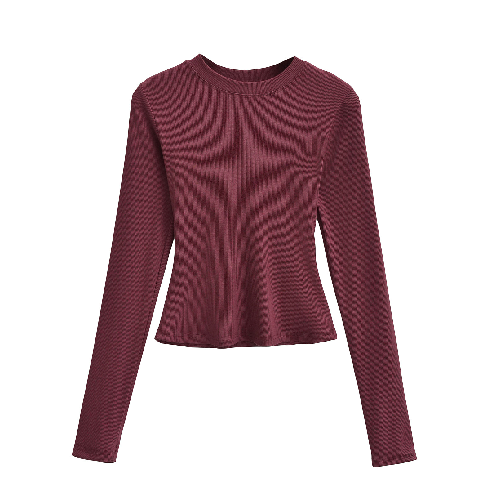 Главная страница > Облегающая рубашка с круглым вырезом Kardashian Kendou, Женская Весенняя обтягивающая футболка с длинным рукавом, облегающая Однотонная футболка европейского и американского цвета