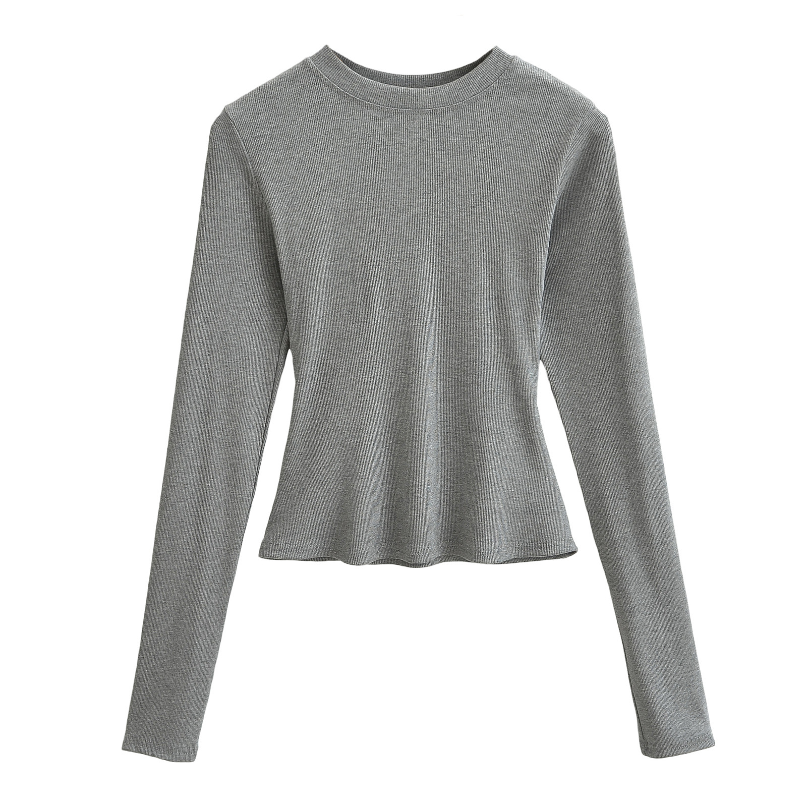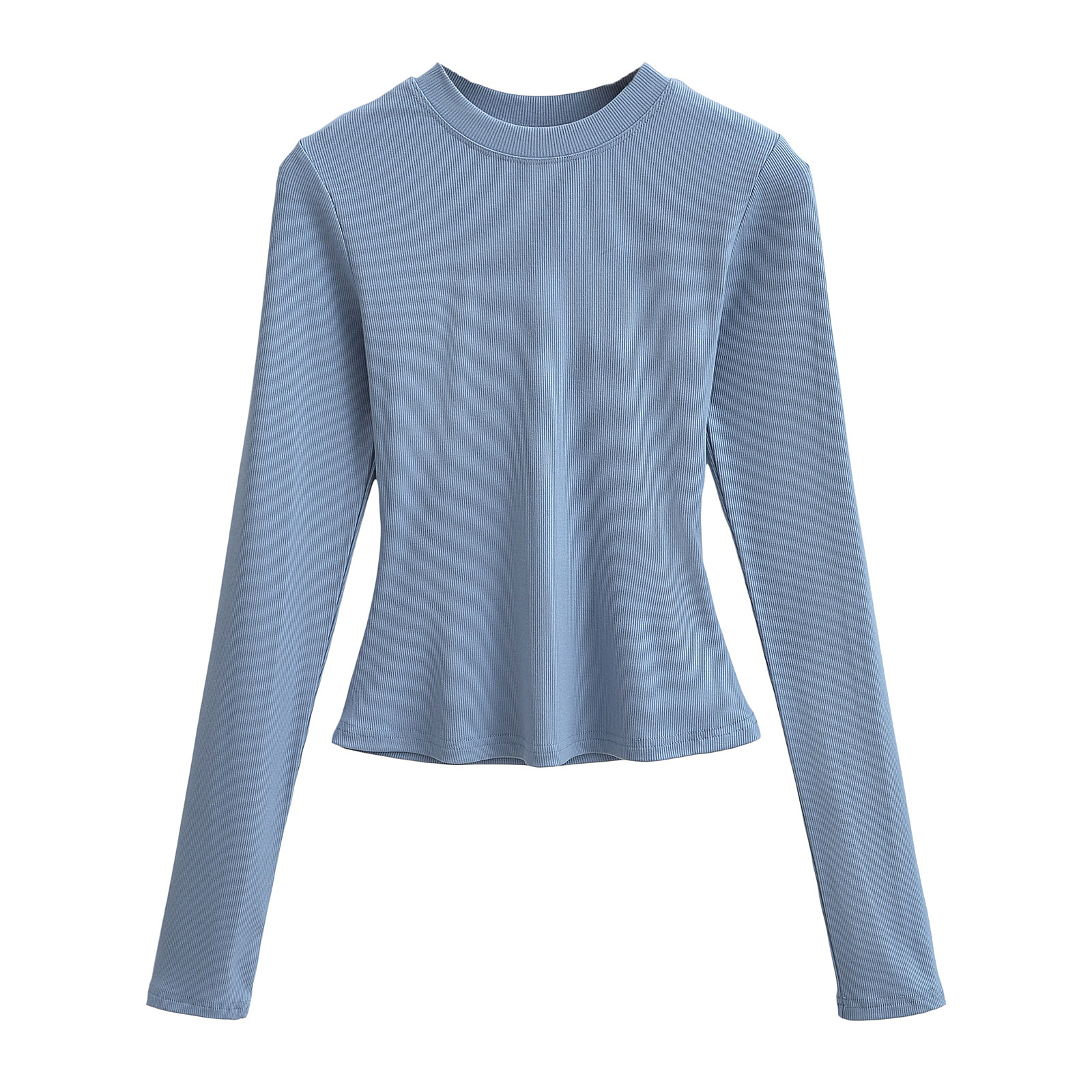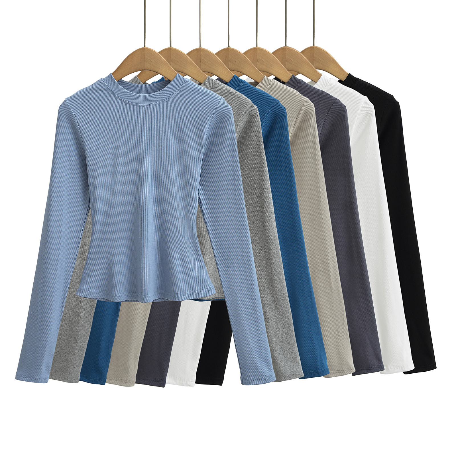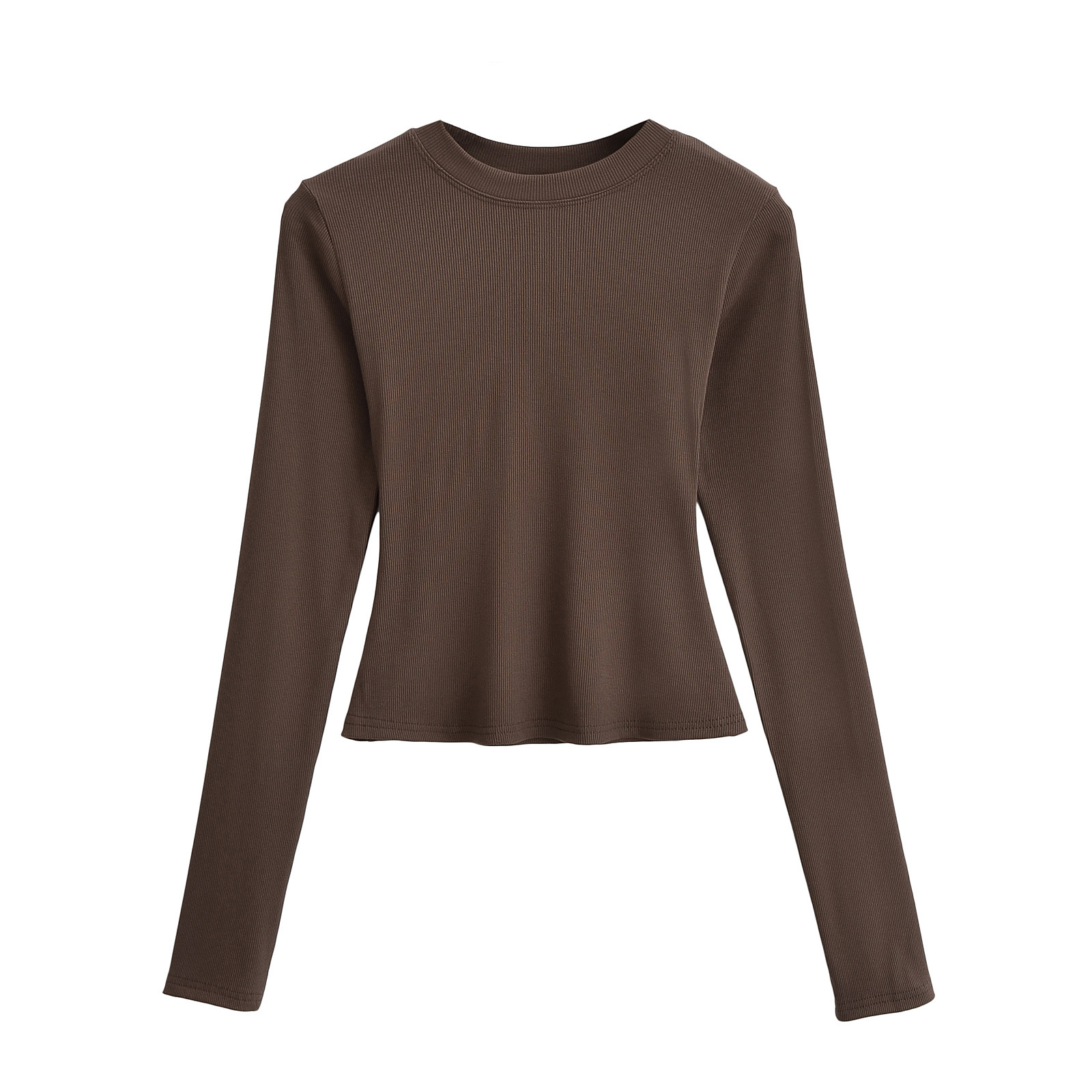 Главная страница > Облегающая рубашка с круглым вырезом Kardashian Kendou, Женская Весенняя обтягивающая футболка с длинным рукавом, облегающая Однотонная футболка европейского и американского цвета