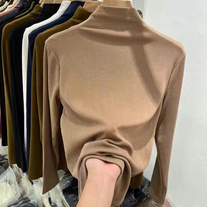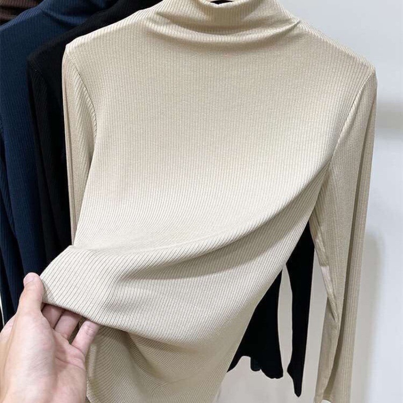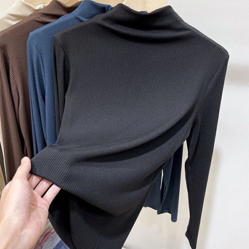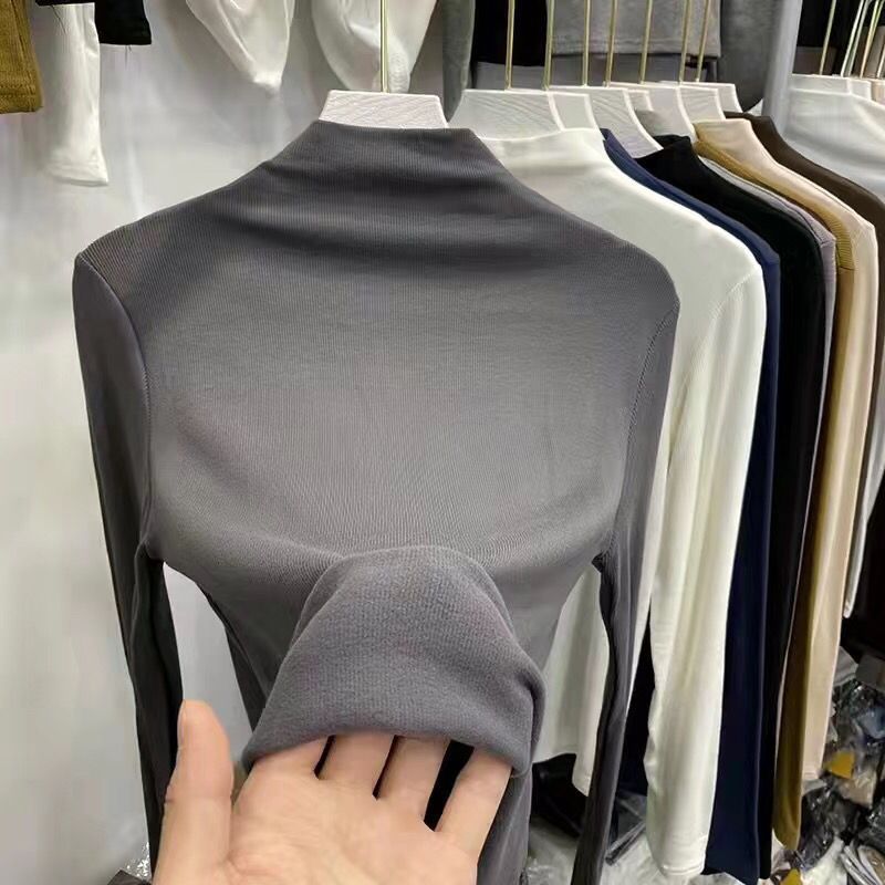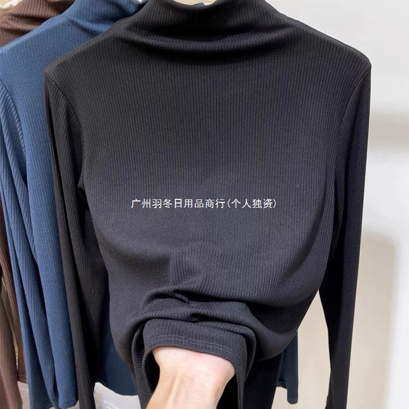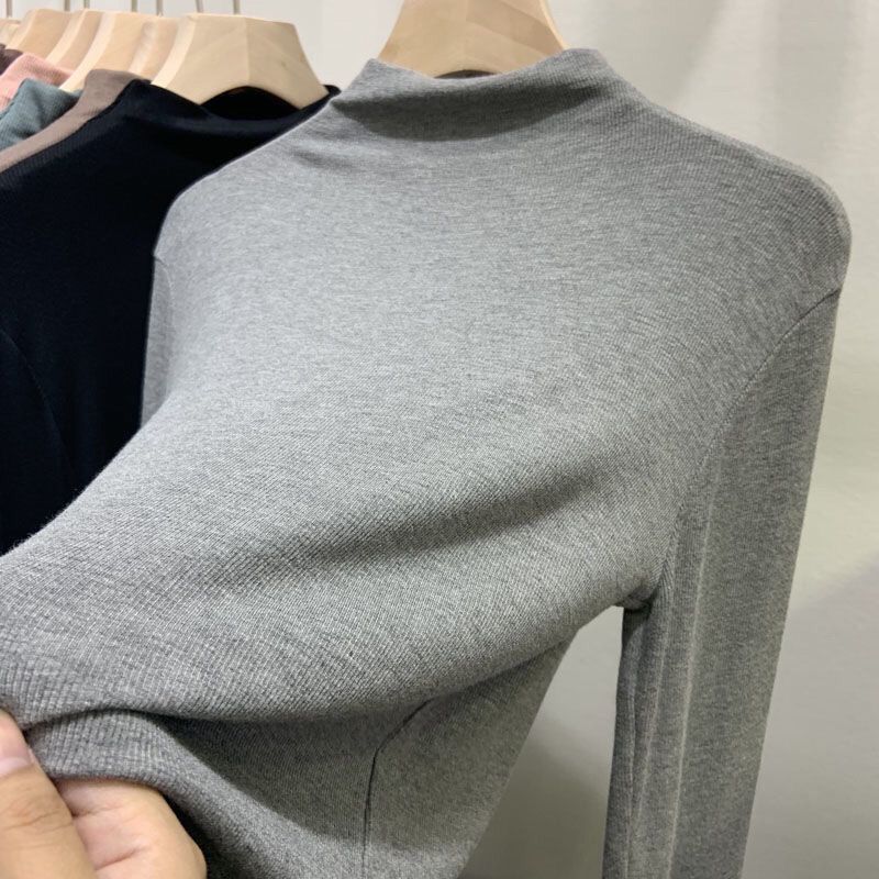 Главная страница > Рубашка с высоким воротом на флисовой подкладке из чистого хлопка, женская тонкая футболка с длинным рукавом, 2023 осень-зима, новинка, внутренний топ