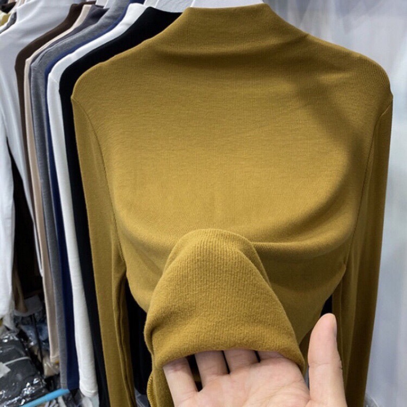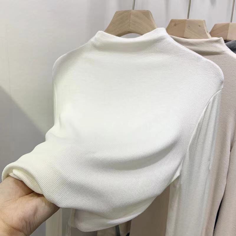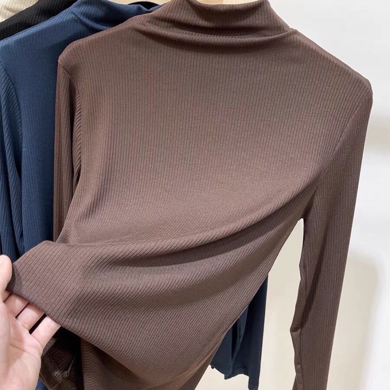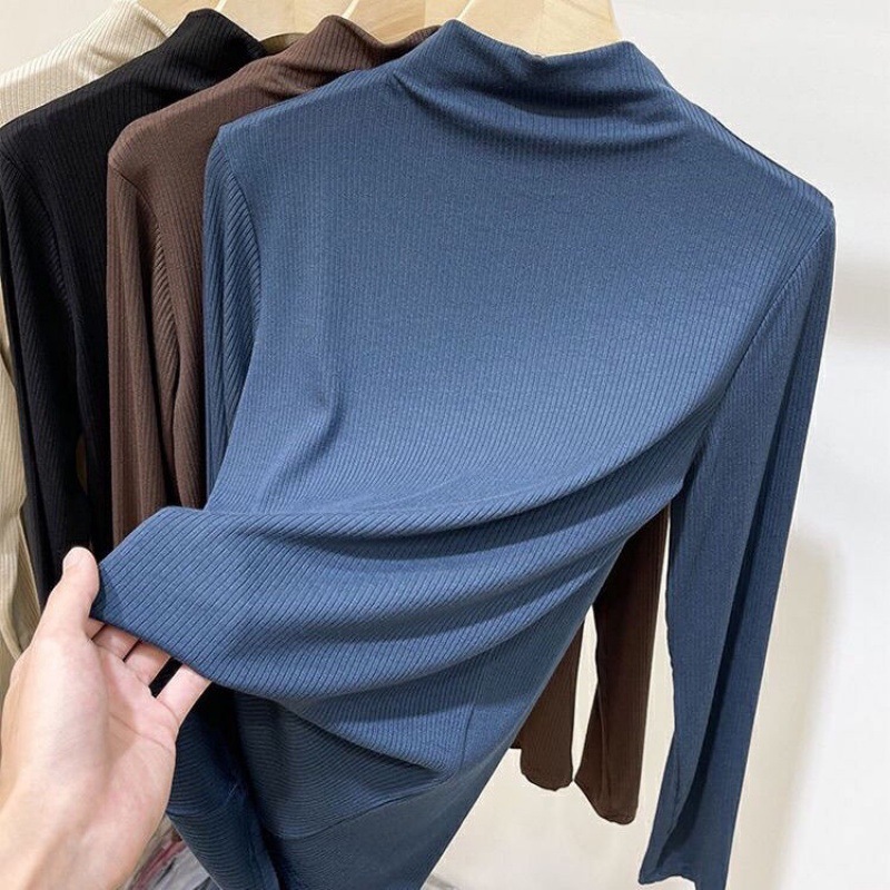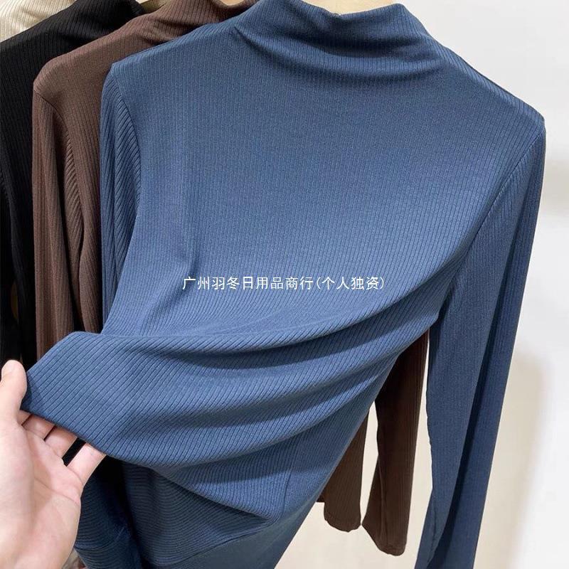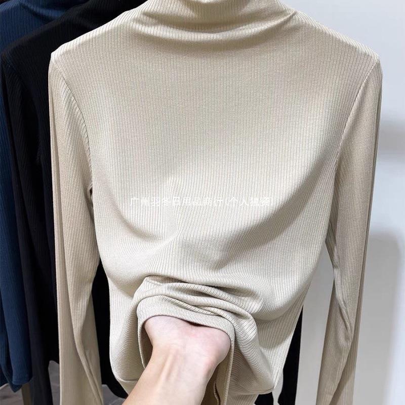 Главная страница > Рубашка с высоким воротом на флисовой подкладке из чистого хлопка, женская тонкая футболка с длинным рукавом, 2023 осень-зима, новинка, внутренний топ