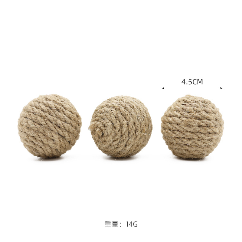 Мяч из пеньковой веревки для домашних животных 4,5 см тканый шарик из конопли натурального цвета, содержащий небольшой песчаный камень, метательная игрушка Конопляный шарик