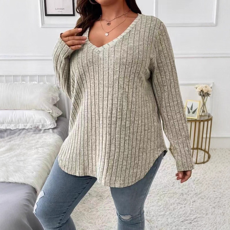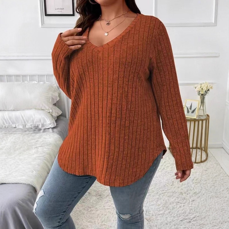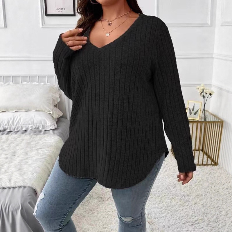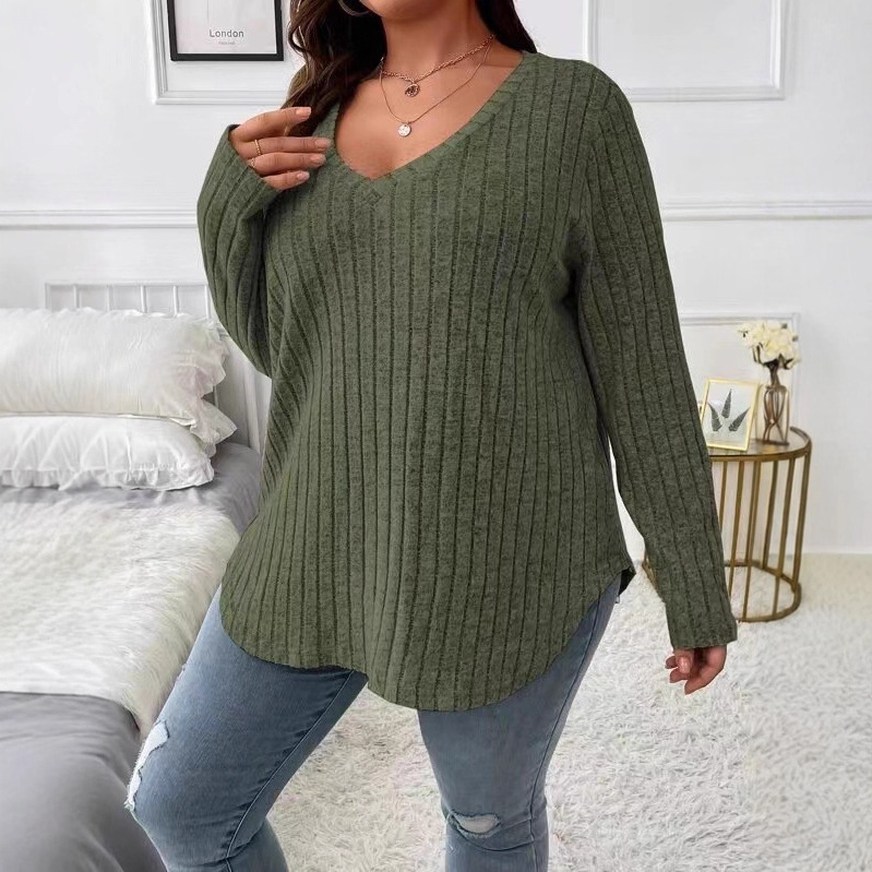 Главная страница > 2025 Независимый сайт Amazon Европейская и американская осенне-зимняя новая однотонная футболка большого размера с v-образным вырезом и длинными рукавами для женщин