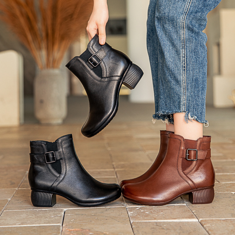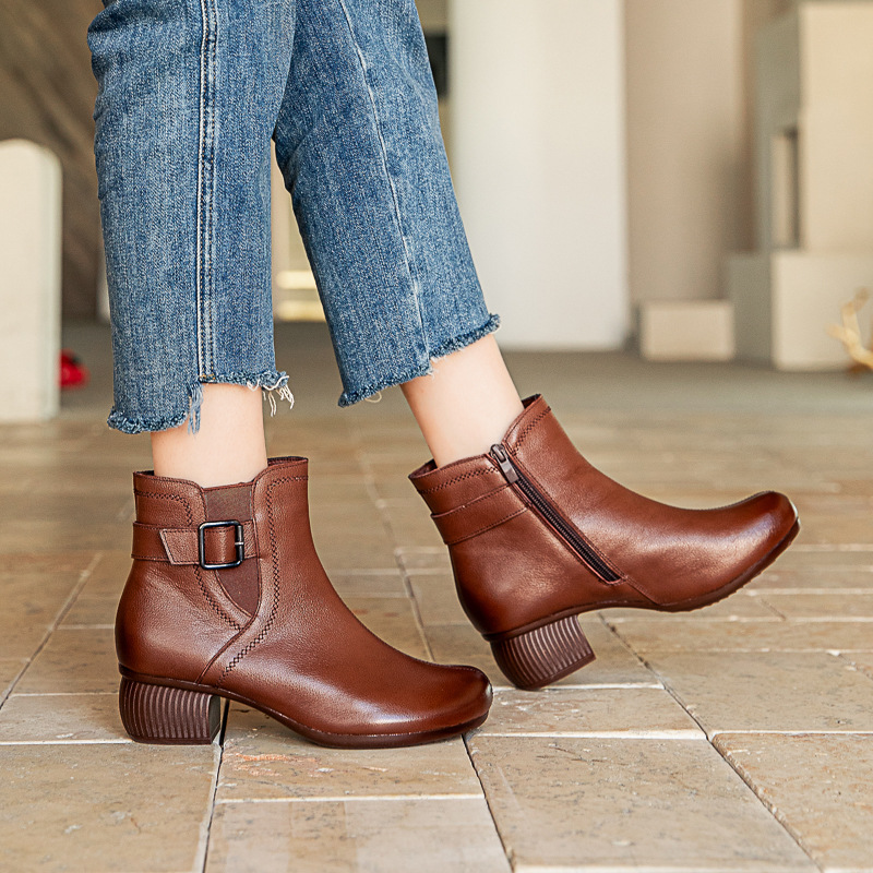 Главная страница > Этнический стиль ретро кожаные короткие сапоги женские осенние и зимние новые кожаные теплые толстые каблуки на молнии Мартин сапоги с круглой головой женские сапоги