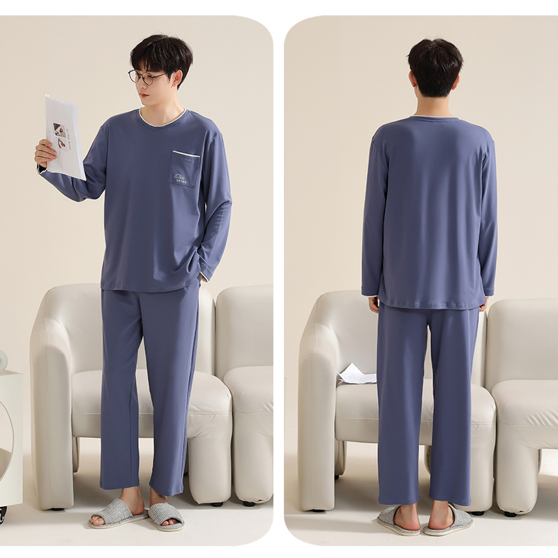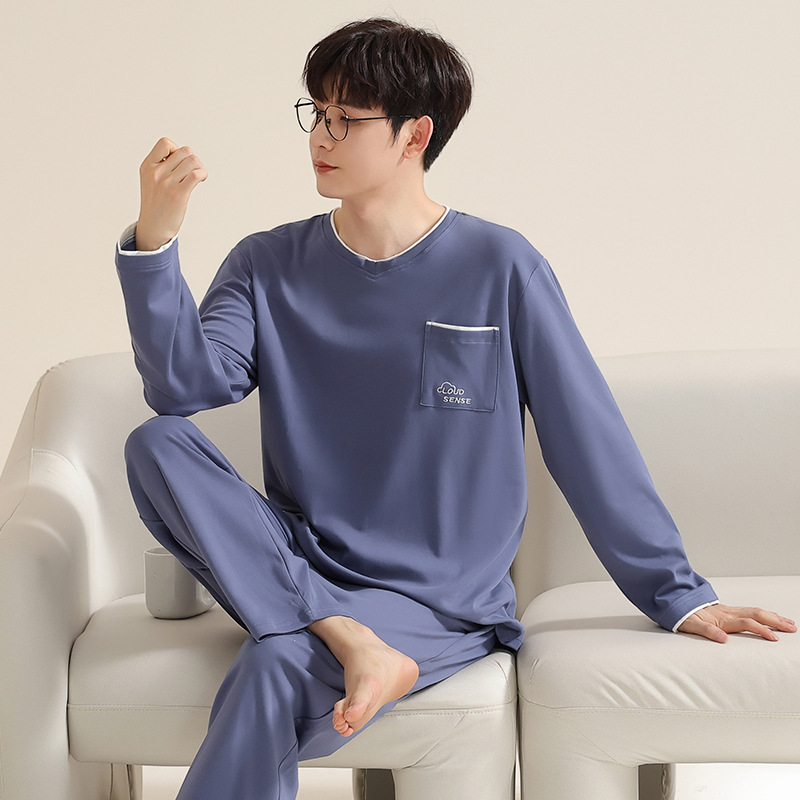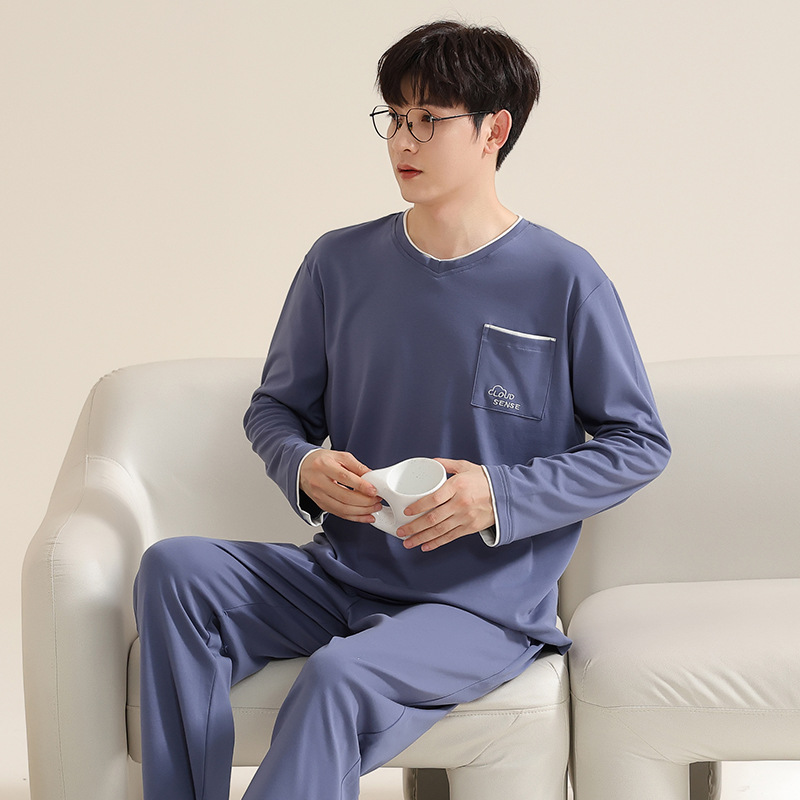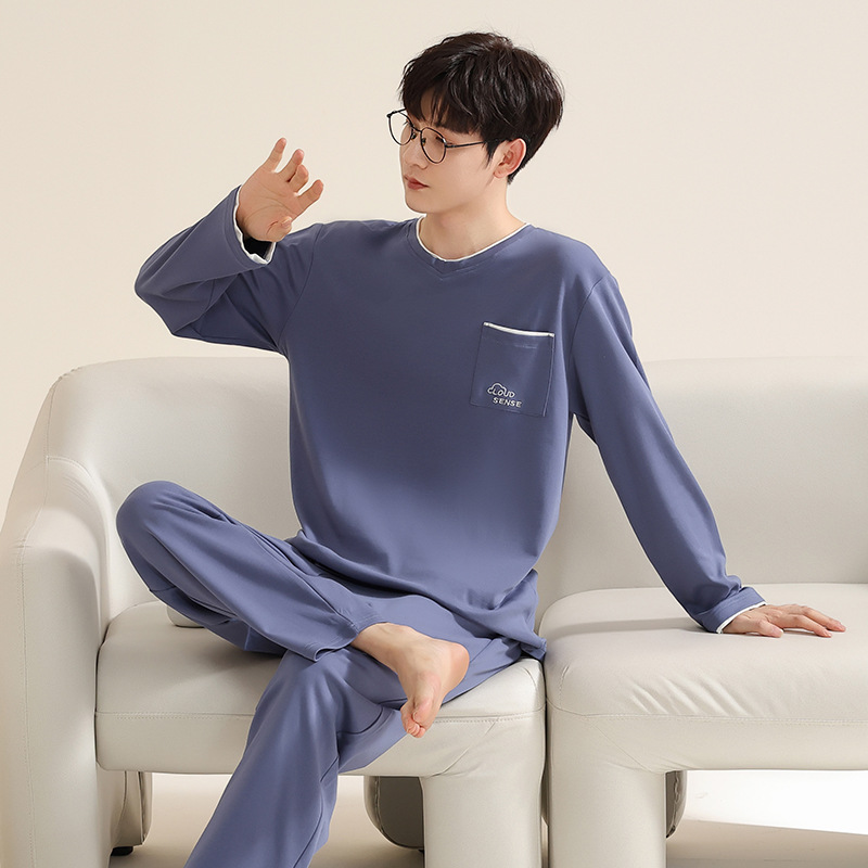 Главная страница > Весенне-осенние хлопковые пижамы с подтягивающейся рамкой, Мужской пуловер с V-образным вырезом и длинными рукавами, домашняя одежда, простой Молодежный уличный костюм для отдыха