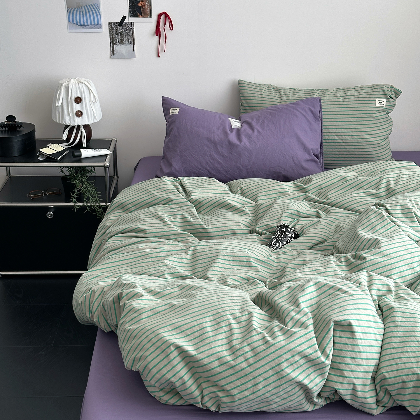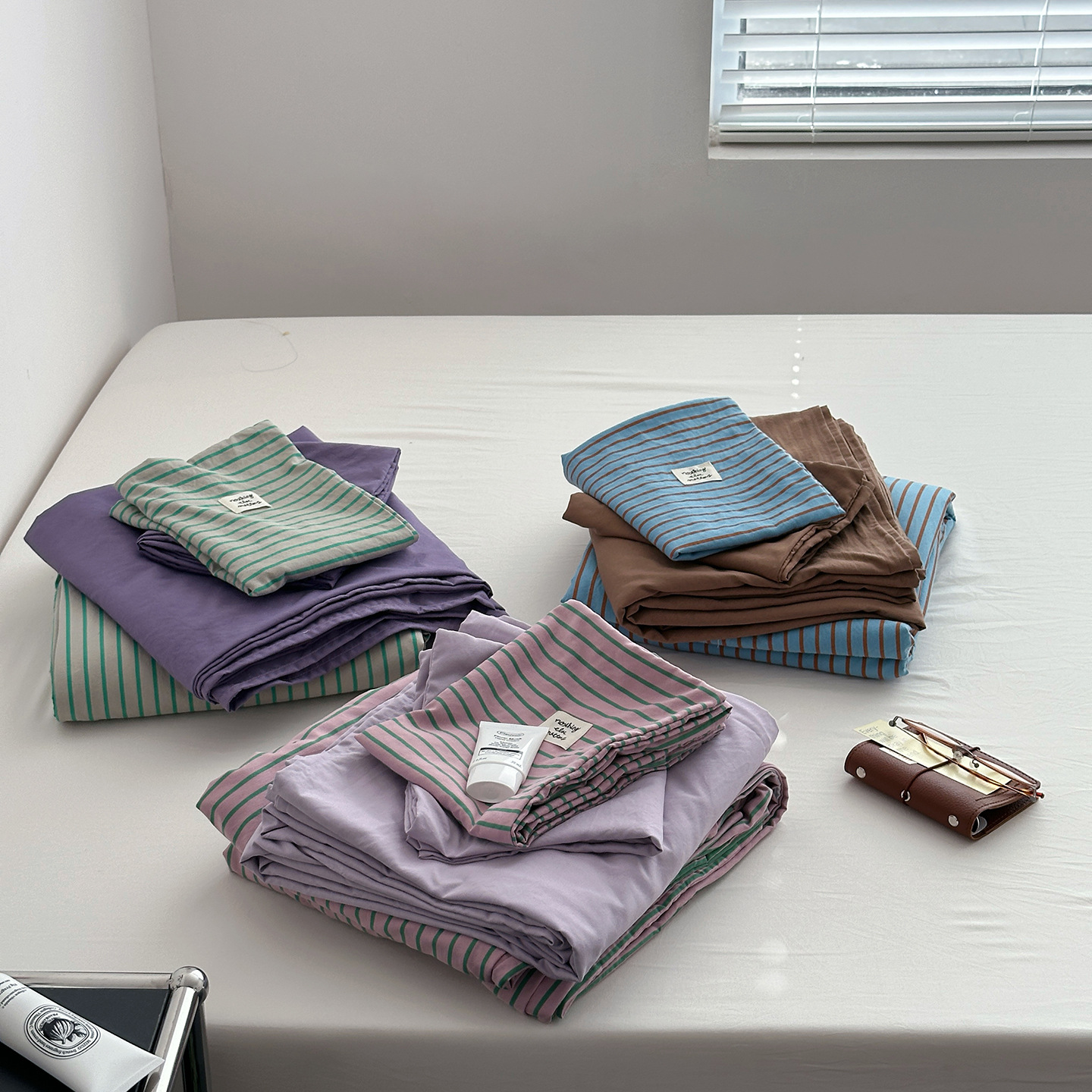 Главная страница > Скандинавский стиль, полосатая кровать, комплект из четырех предметов, смешанная кровать, простыни, пододеяльник, студенческое общежитие, комплект из 3 предметов, оптовая продажа