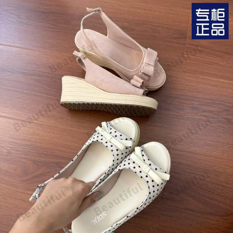 Супер высокие каблуки на танкетке, водонепроницаемая платформа, толстая подошва, милый бант, туфли с открытой спиной и рыбьим ртом, соломенные сандалии с внутренним увеличением для женщин.
