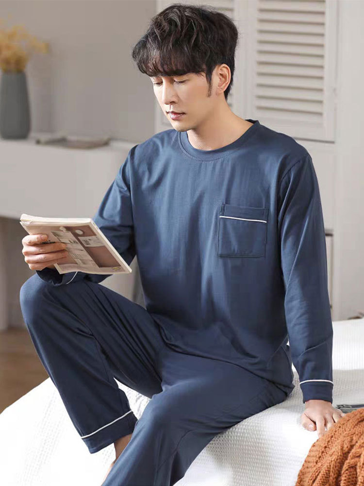 Главная страница > Тонкие хлопковые мужские пижамы весной и осенью с круглым вырезом