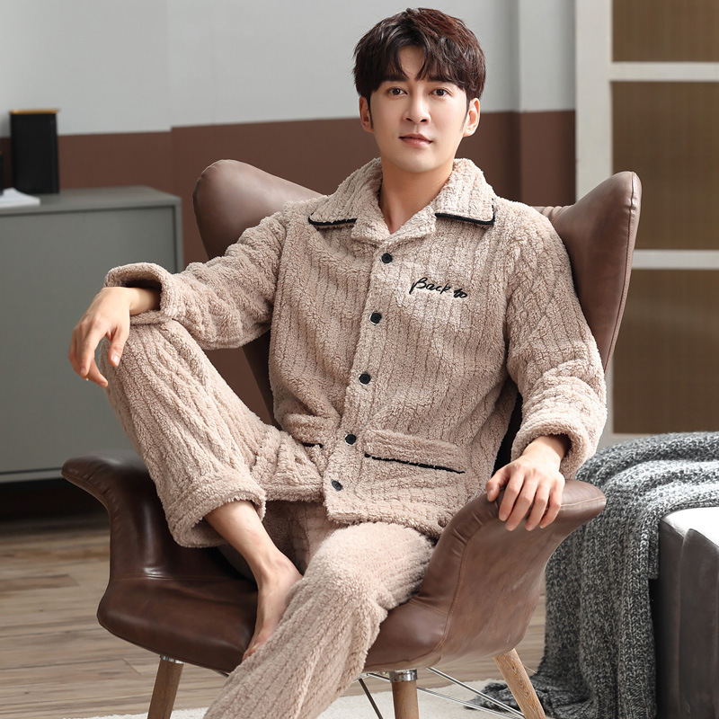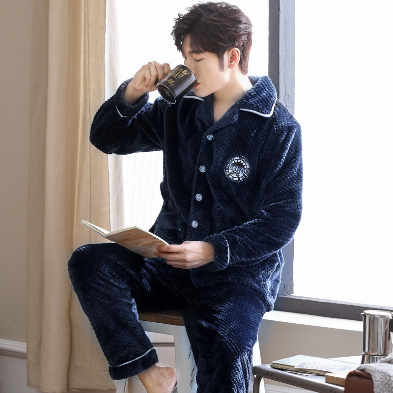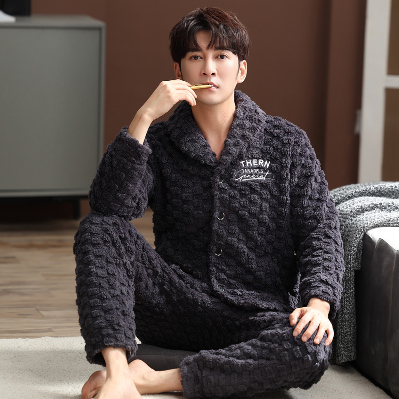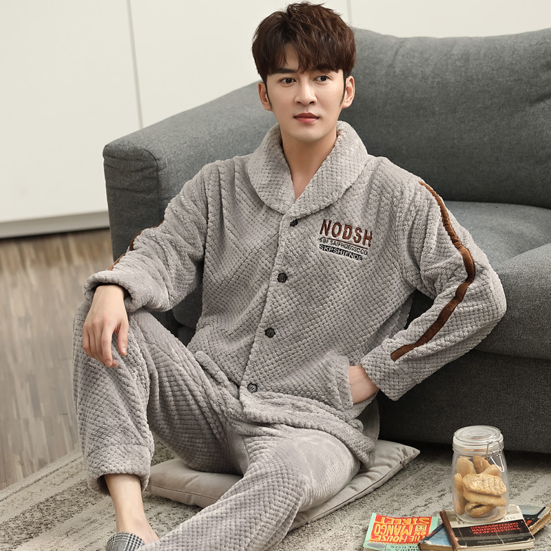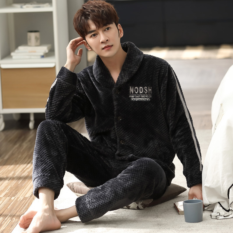 Главная страница > Оптовая оптовая пижама мужской зимний коралловый бархат утолщенные лацканы мужская толстая фланелевая домашняя одежда большого размера