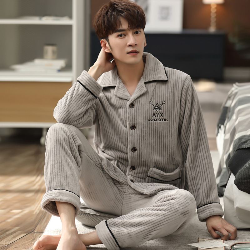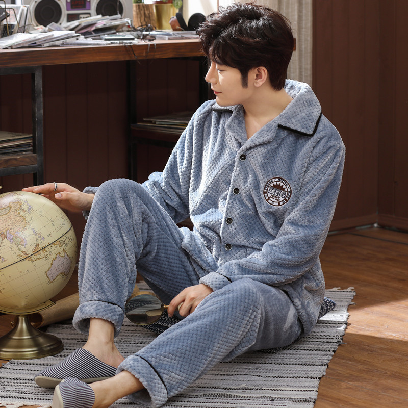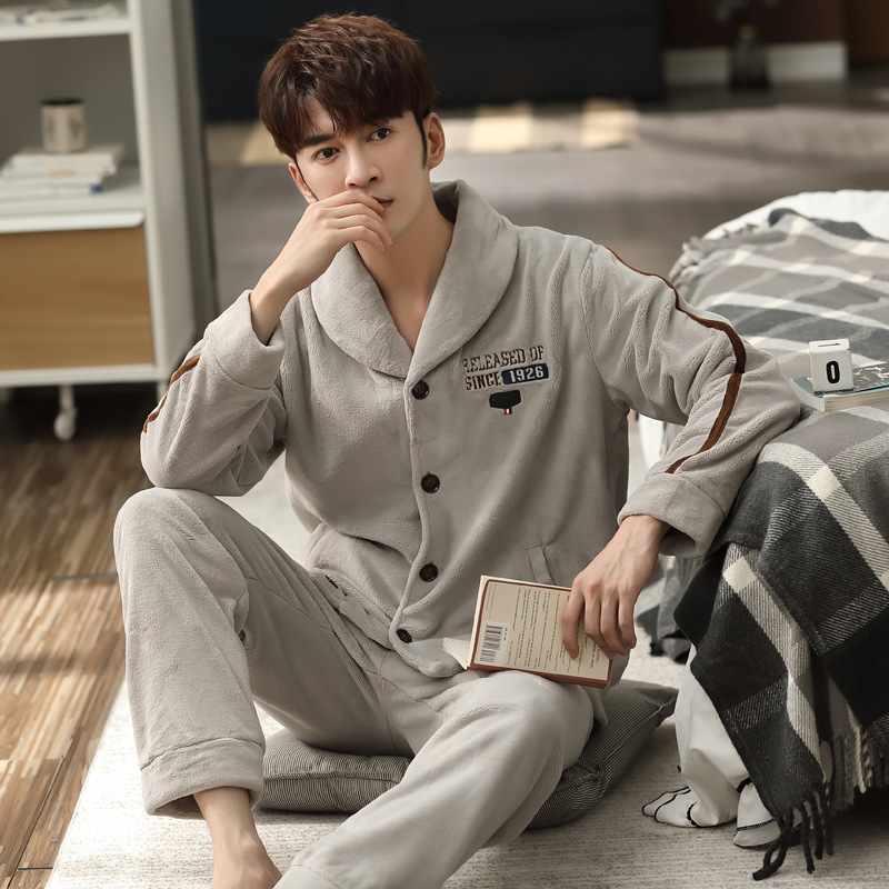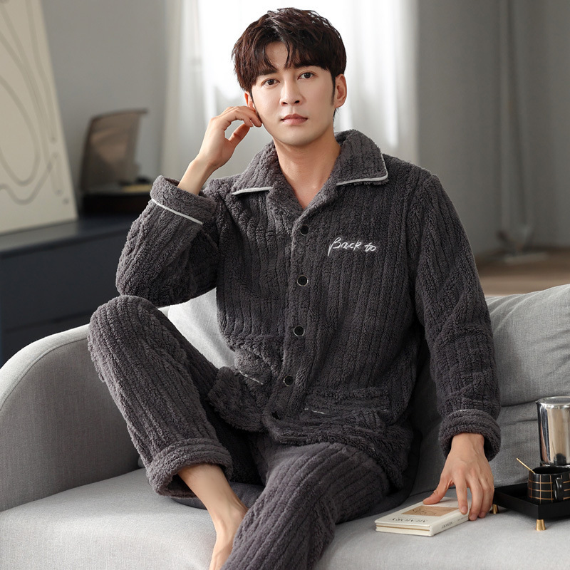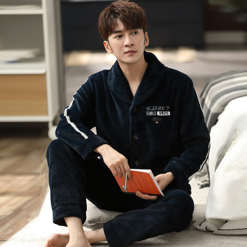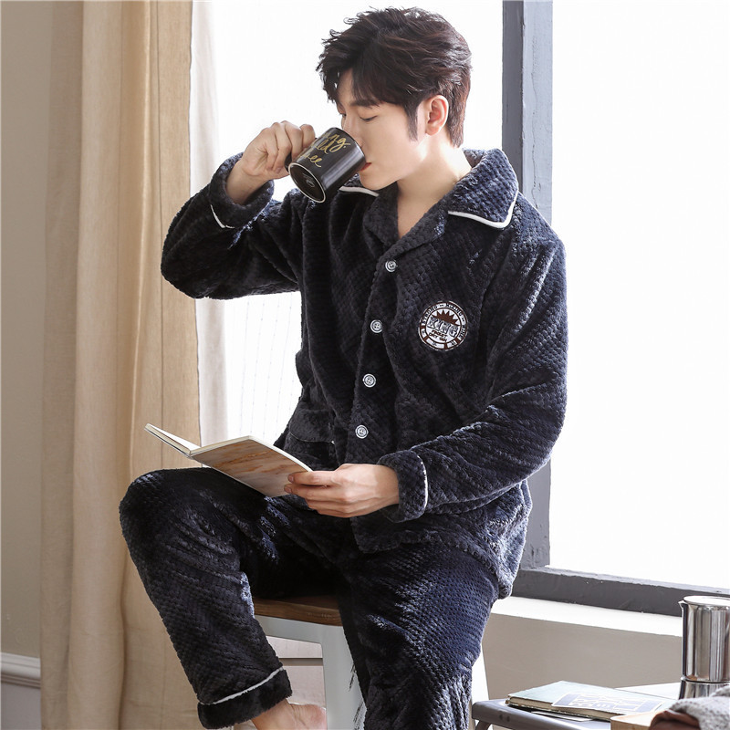 Главная страница > Оптовая оптовая пижама мужской зимний коралловый бархат утолщенные лацканы мужская толстая фланелевая домашняя одежда большого размера