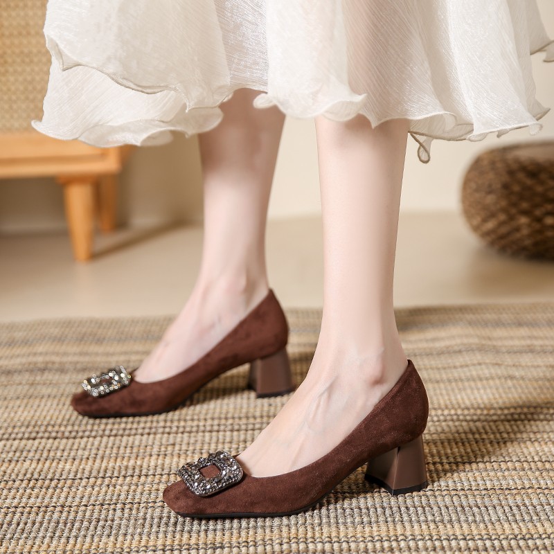 Главная страница > Французские туфли на каблуках на светлых каблуках 2025 новые квадратные стразы