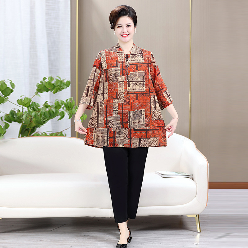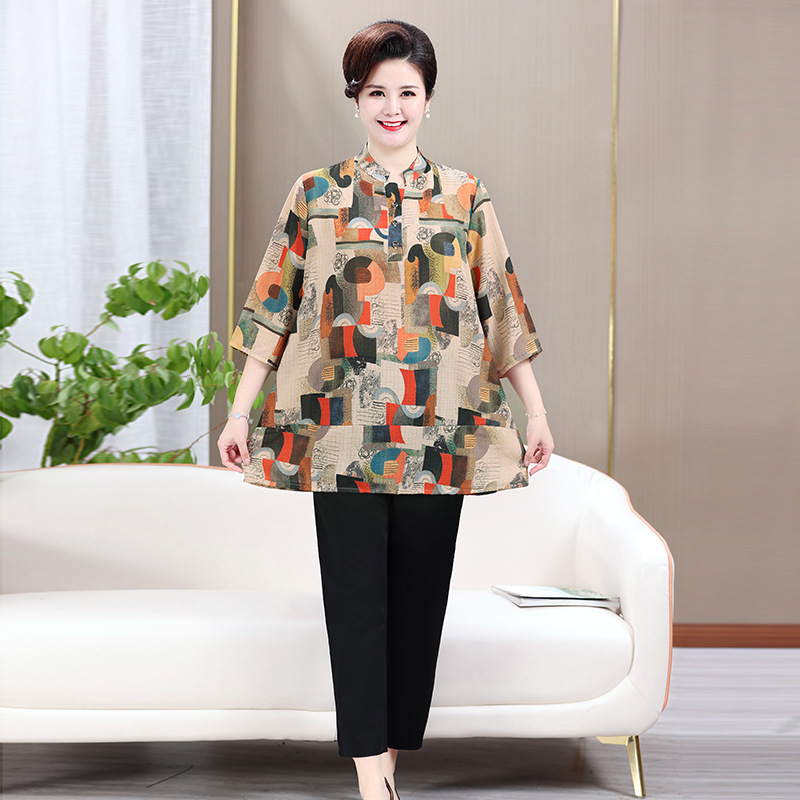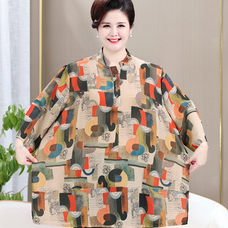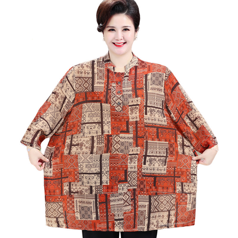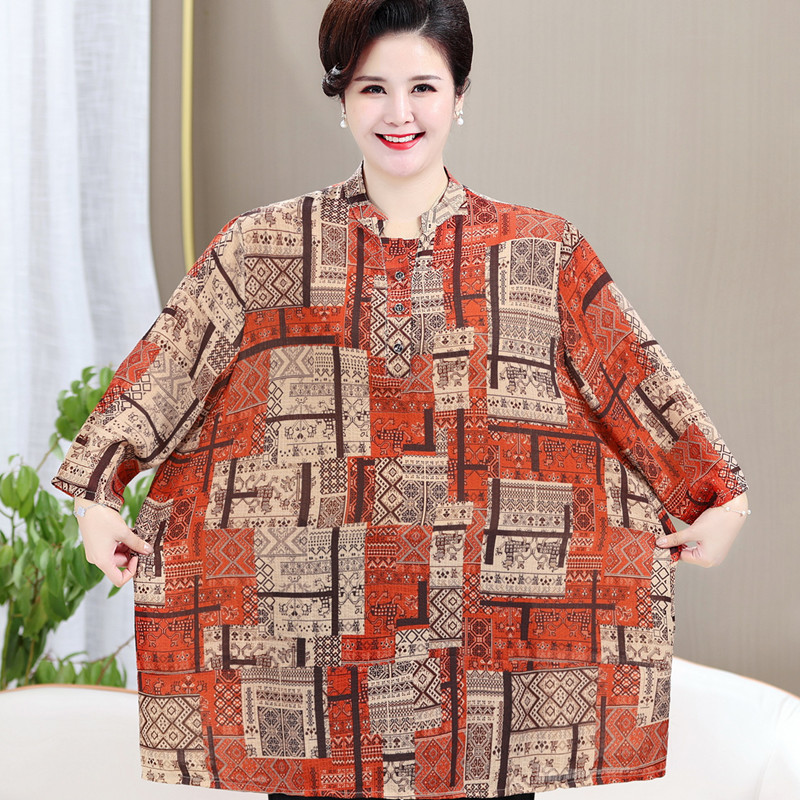 Главная страница > Шифоновая рубашка средней длины для женщин, летнее платье для мам среднего возраста с короткими рукавами, футболка больших размеров для прикрытия живота, топы 100kg