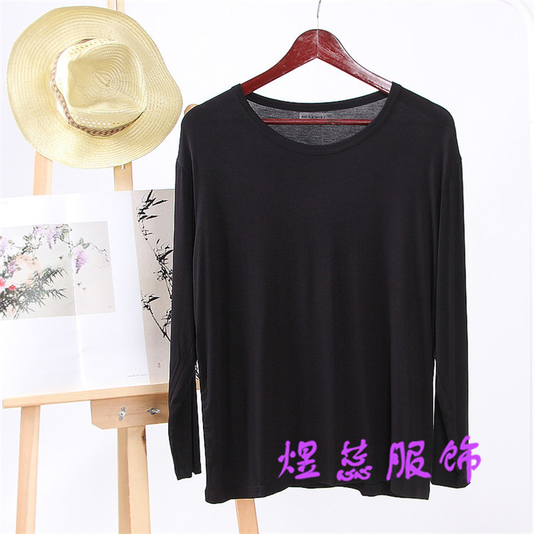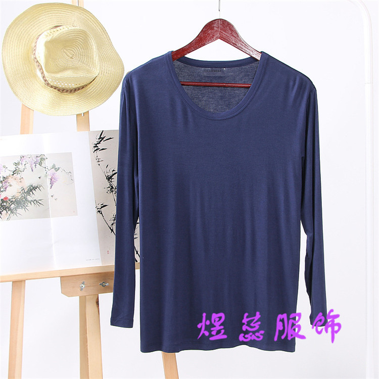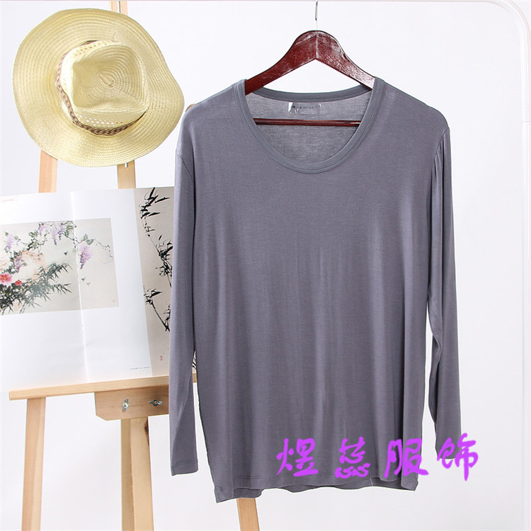 Мужская Модальная осенне-зимняя футболка с круглым вырезом и длинным рукавом, свободная Спортивная Повседневная Пижама больших размеров, осенняя одежда, домашняя одежда