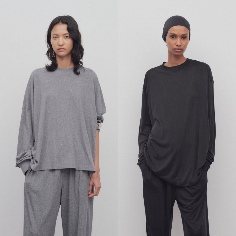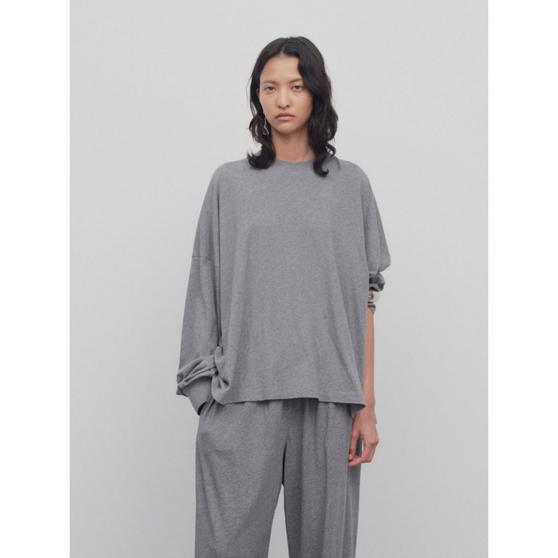 Главная страница > Longmei 2021, ранняя осень, новая серая свободная футболка в стиле нормкор ROW с длинными рукавами, повседневный брючный костюм на шнурке для женщин