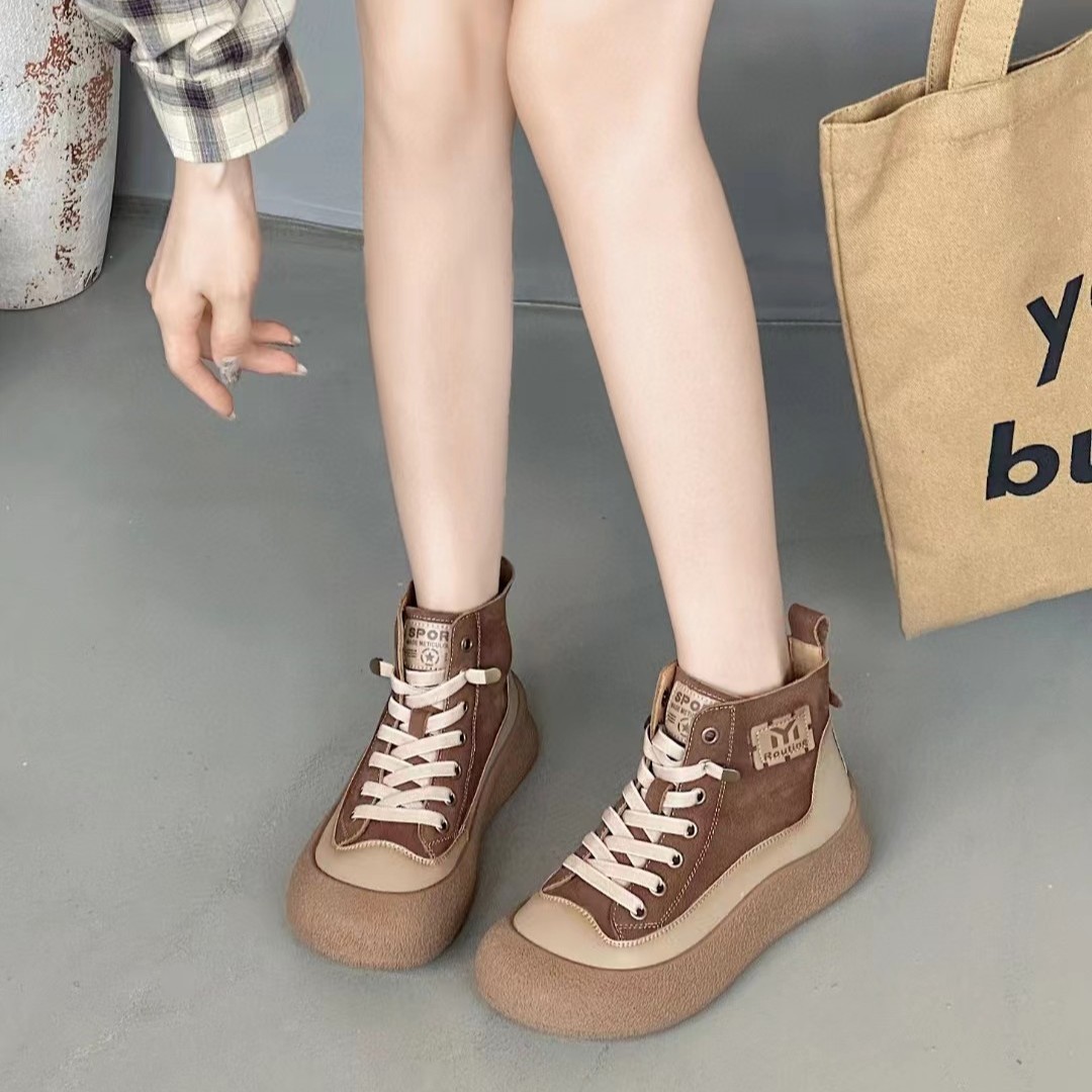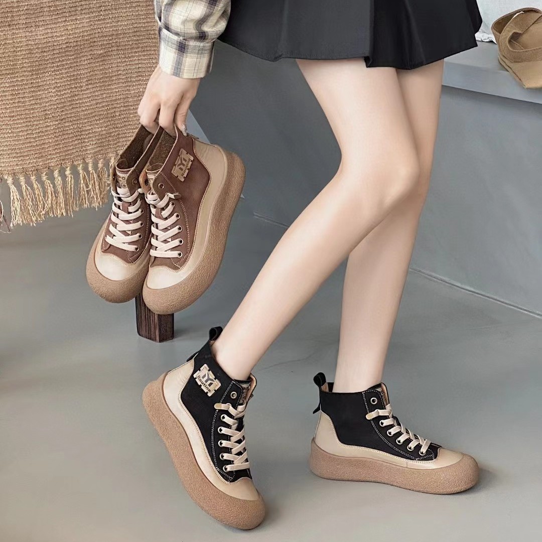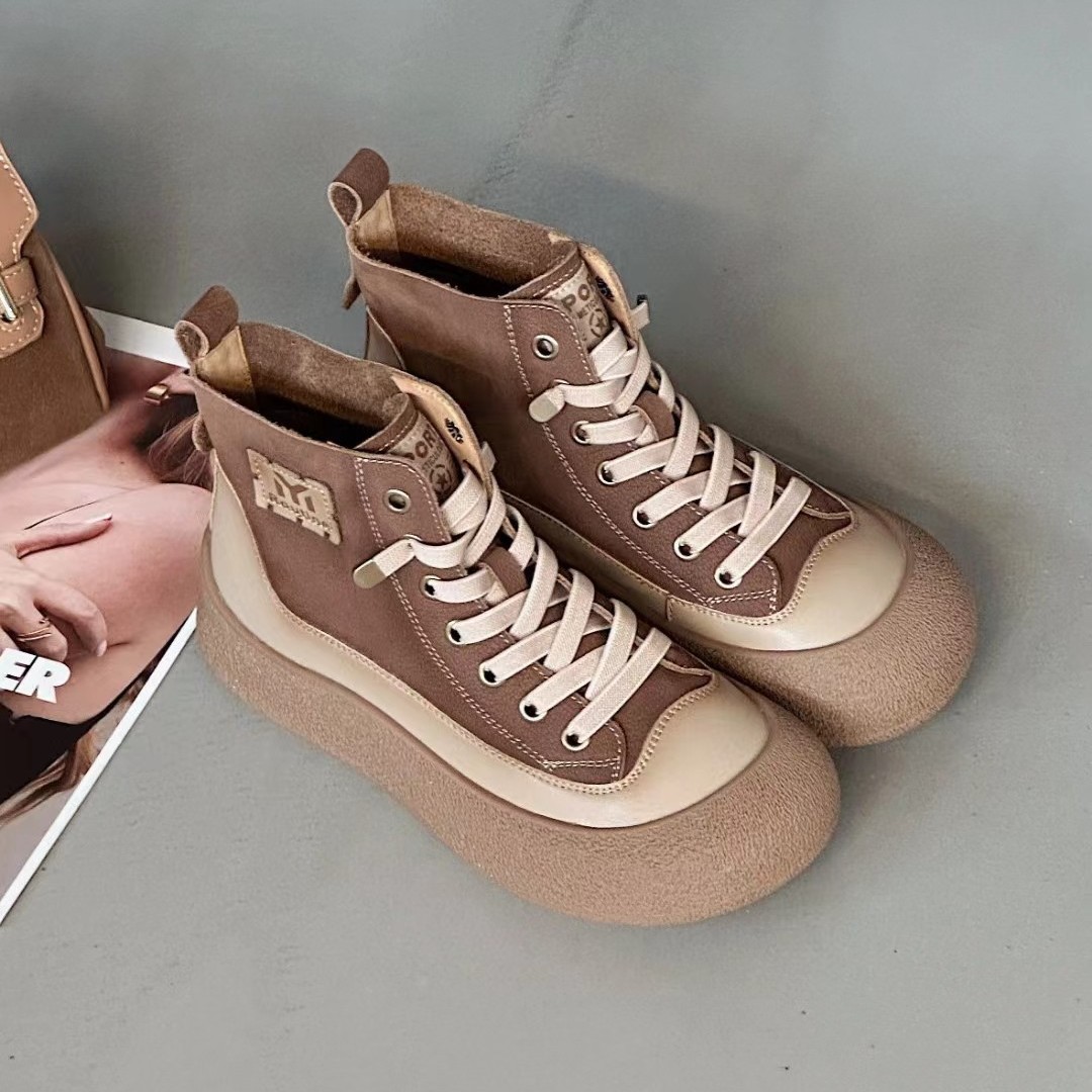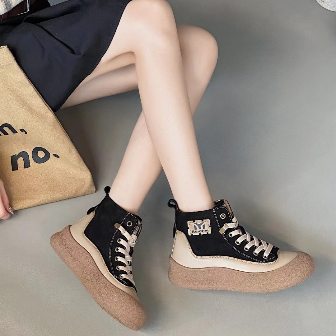 Осенне-зимние 2025: высокие слипоны из натуральной кожи с флисовой подкладкой, на толстой подошве, в стиле колор-блок, ретро, универсальные повседневные ботинки с широким носком.