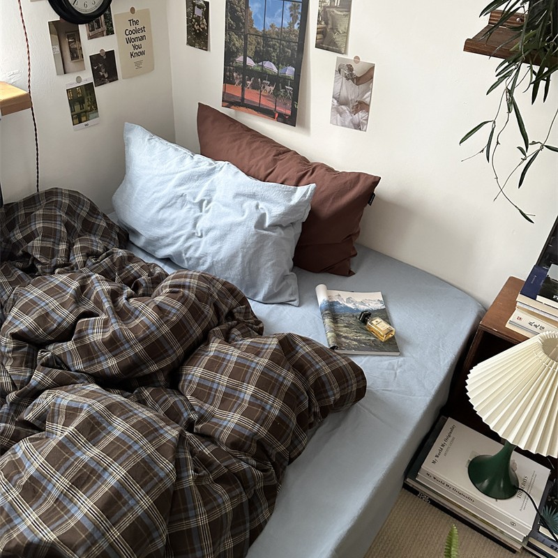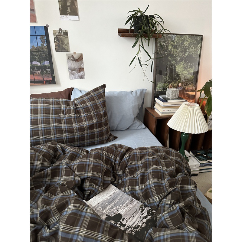 Халл колледж (клетчатая наволочка смешанная джинсовая синяя)