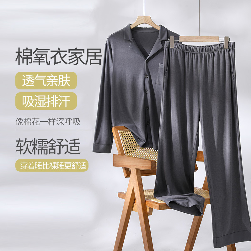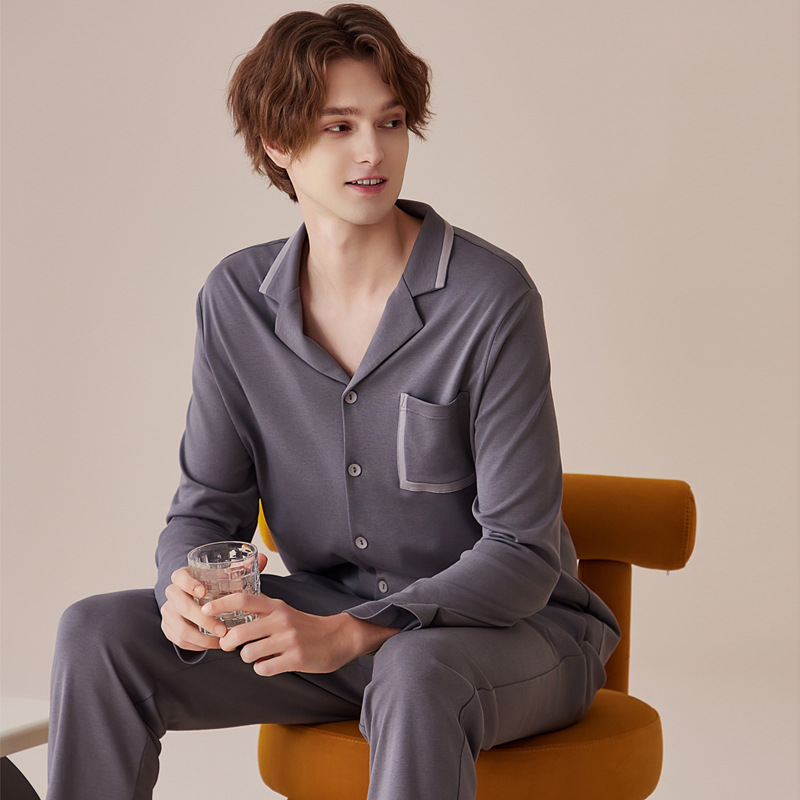 Главная страница > Мужской комплект для дома: тонкая пижама и брюки из модала и хлопка с длинными рукавами, двубортным воротником и лацканами, для весны, осени и зимы.