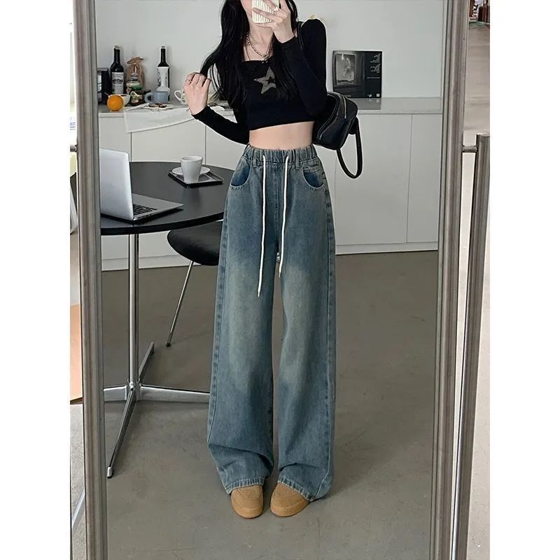 Главная страница > Весенние и летние брюки с высокой талией и широкими ногами, женские брюки тонкие, дикие корейские студенты стягивающие джинсы