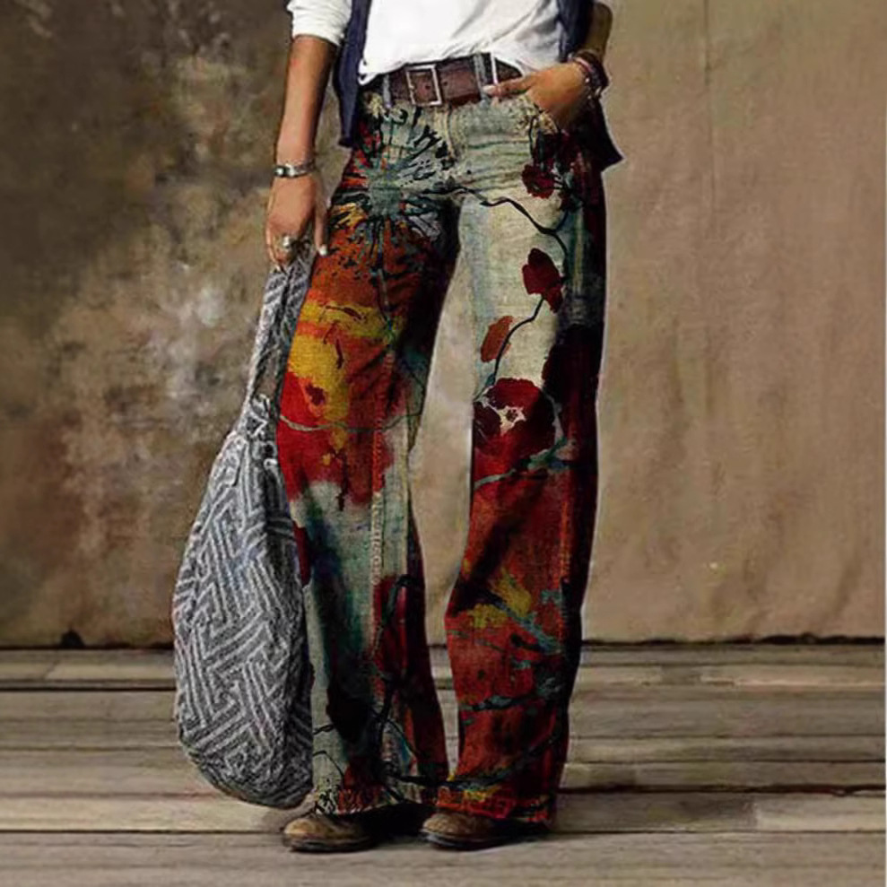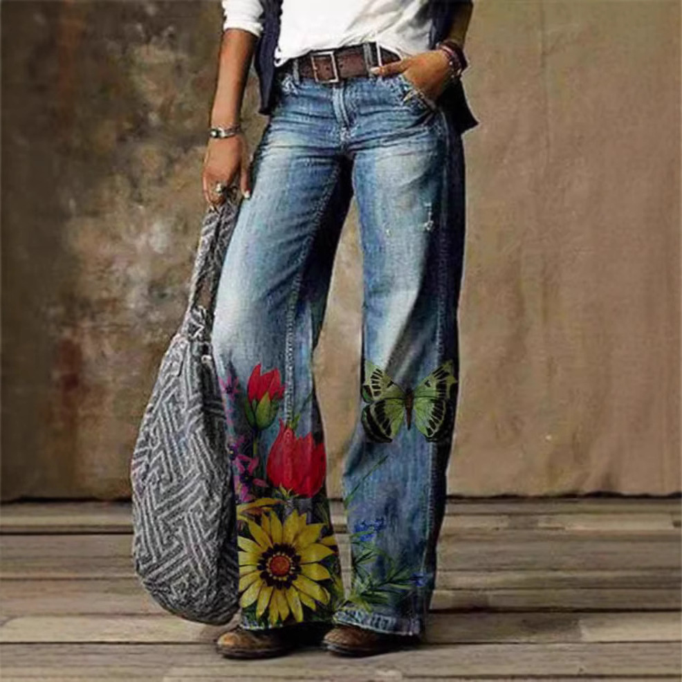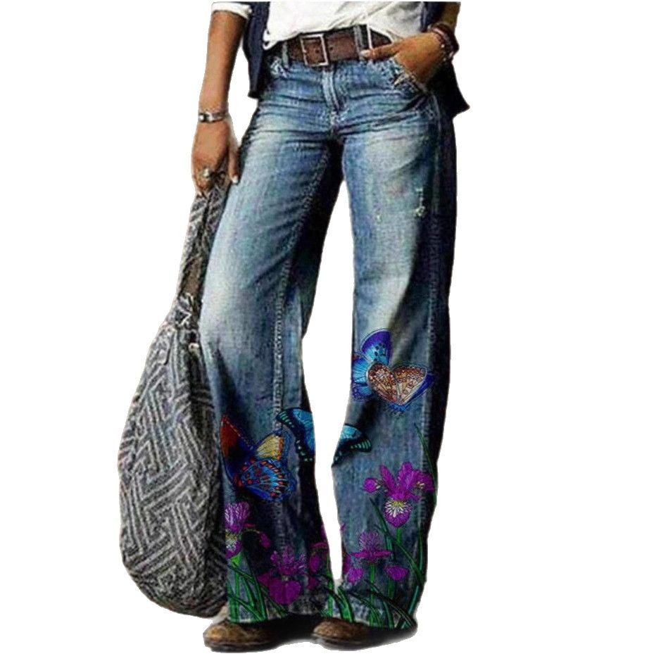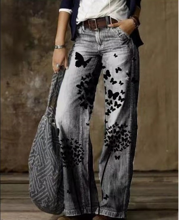 Главная страница > Летние тонкие женские джинсы 2025 года с 3D цифровым принтом, бестселлер Amazon, прямые расклешенные брюки для женщин