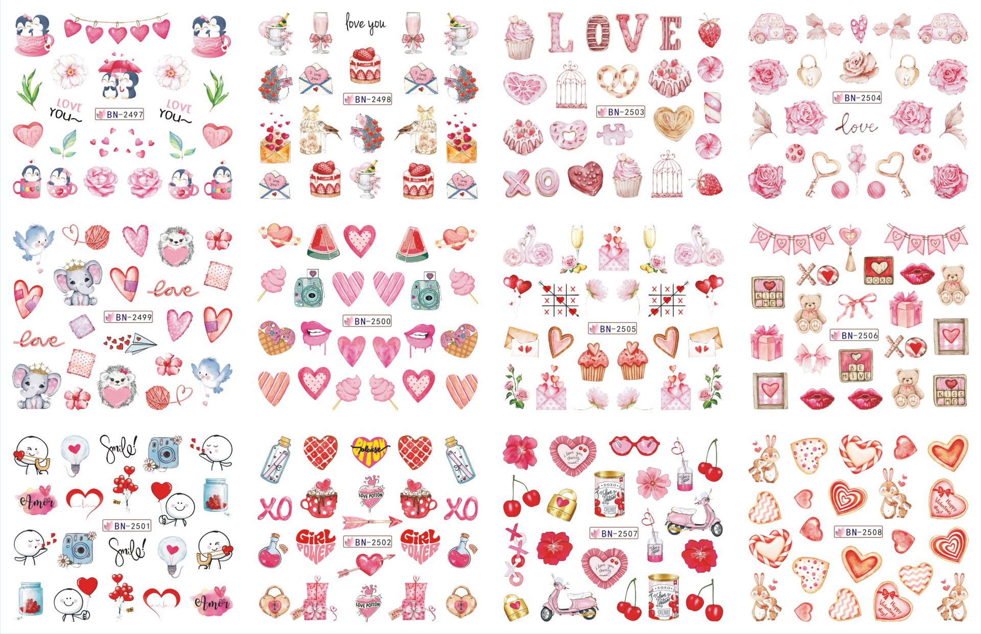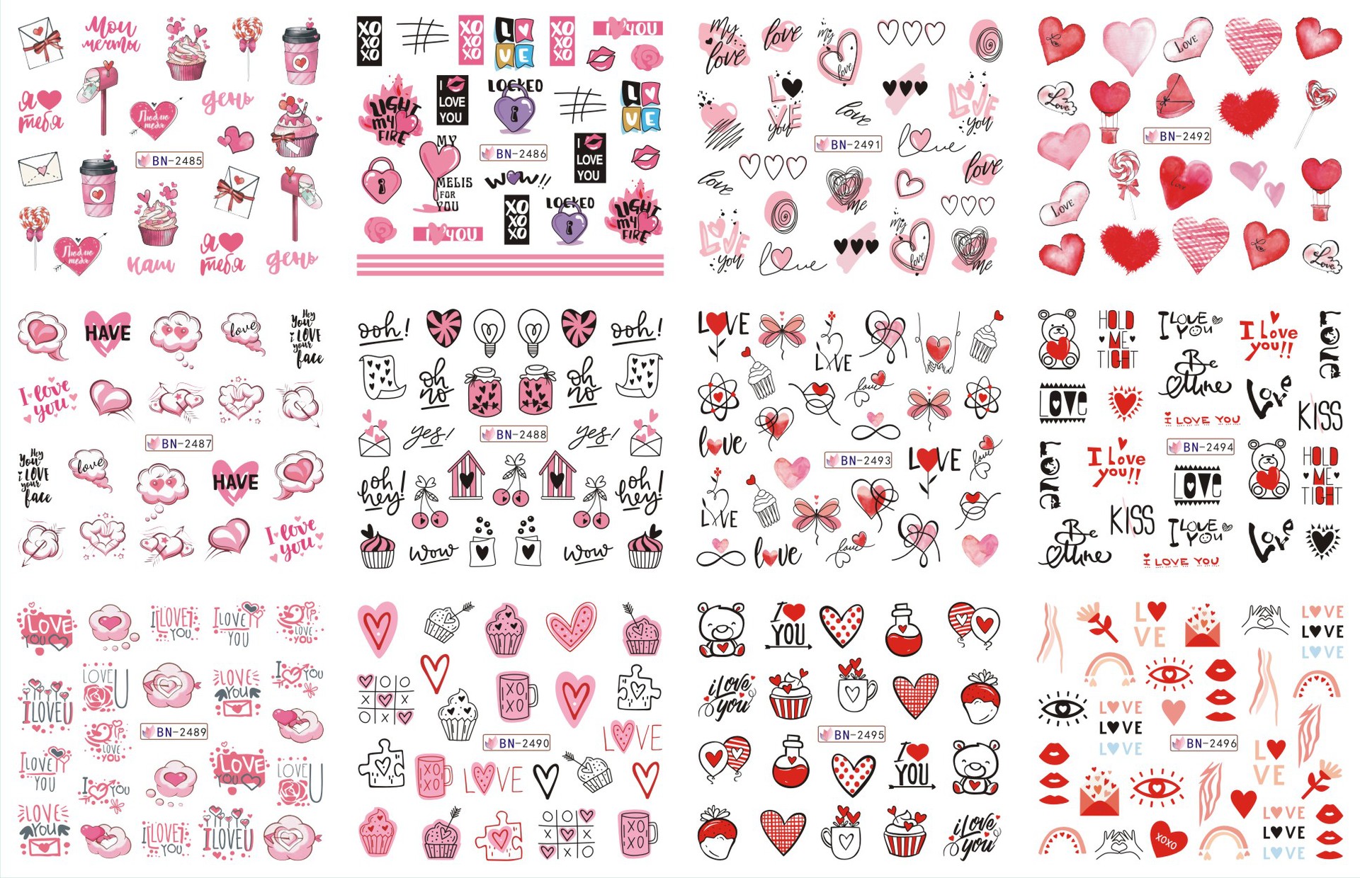 Главная страница > 2023 Новые Водные Наклейки на День Святого Валентина для дизайна ногтей Европейский и американский День Святого Валентина Любовь с принтом губ Розовая девушка большие водные наклейки