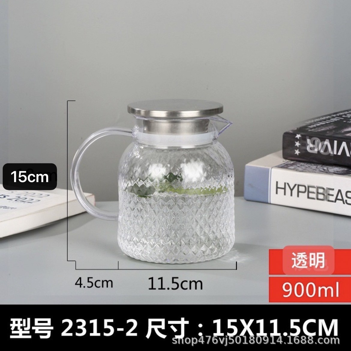 Прозрачный чайник с клетчатым узором, 900 мл, крышка из стали 201