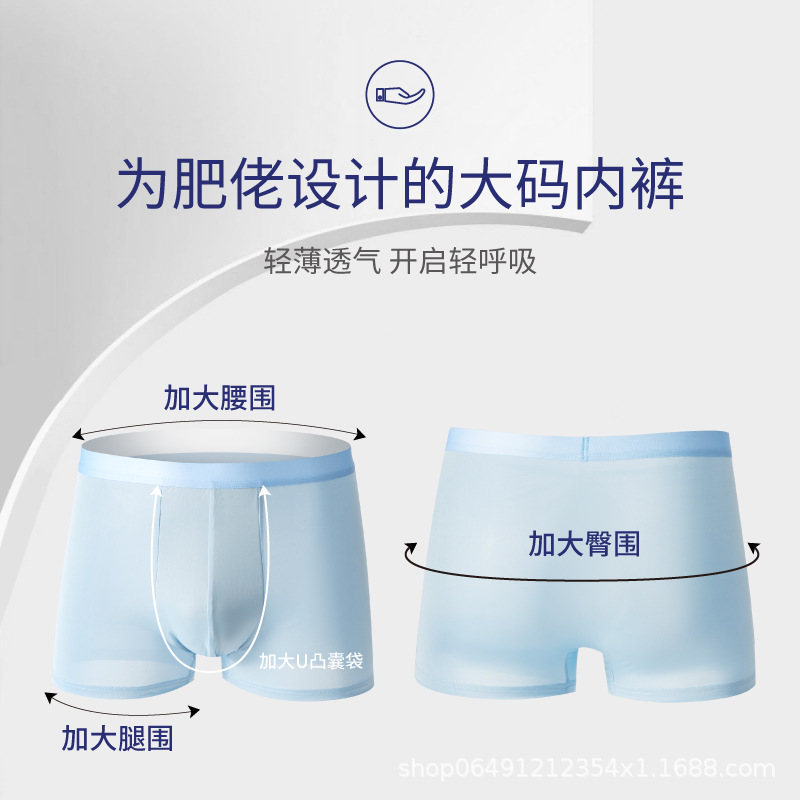 Главная страница > Модное мужское однотонное нижнее белье из ледяного шелка с высокой талией больших размеров для толстых парней, дышащее удобное Мужское нижнее белье-боксеры Four Seasons