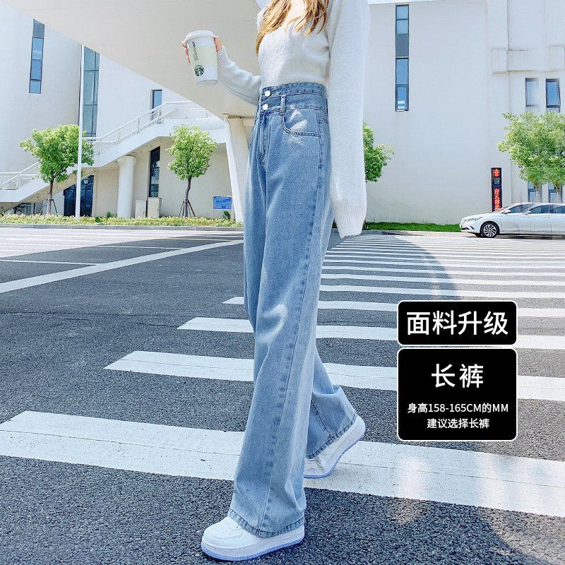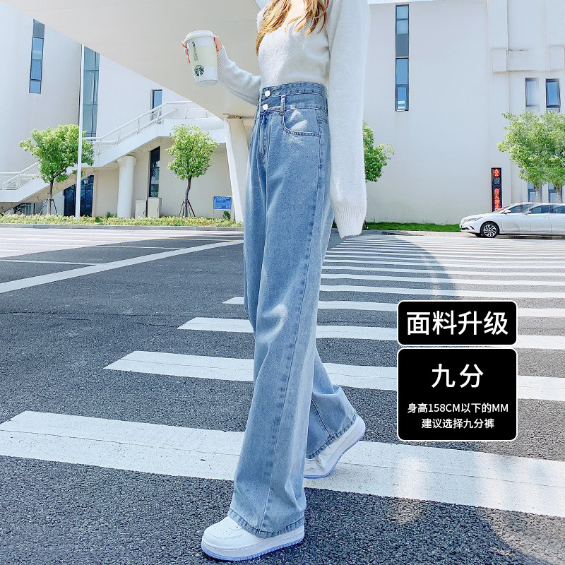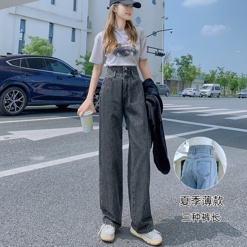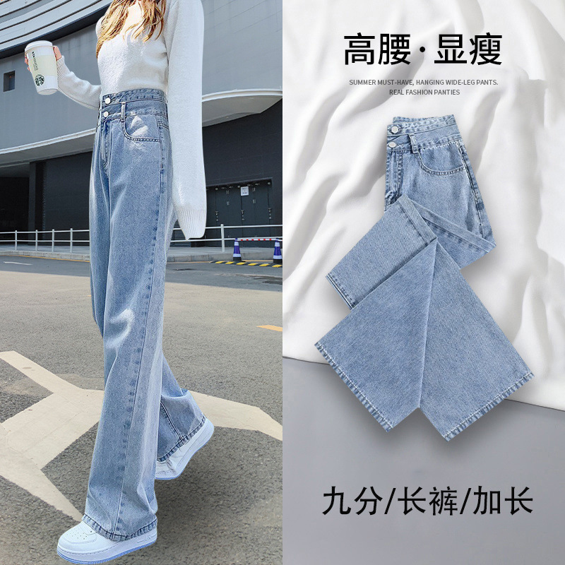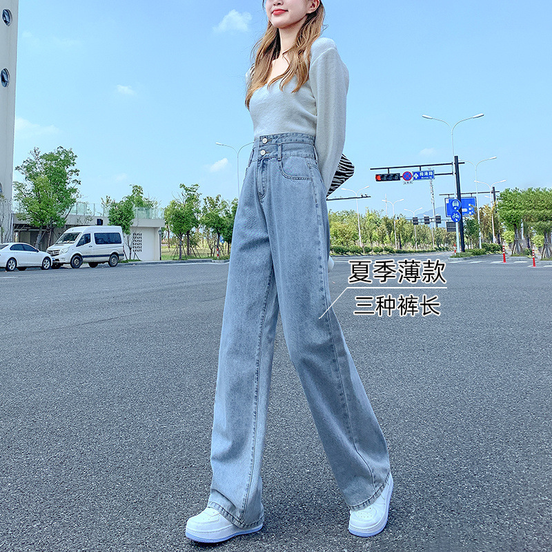 Главная страница > Легкая узкая версия тонкая широкая ножка джинсы женские 2025 новая весна лето с высокой талией свободные тонкие прямые штаны