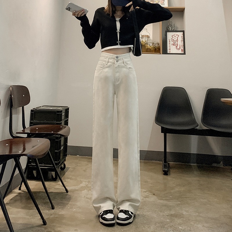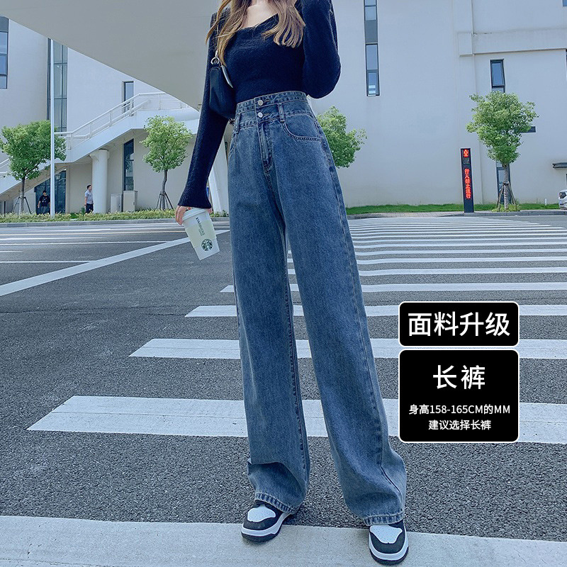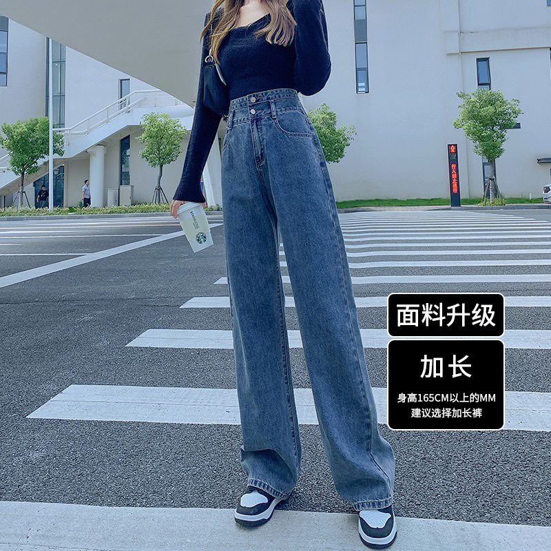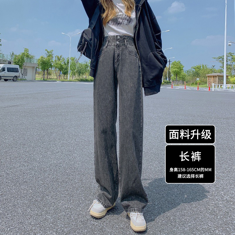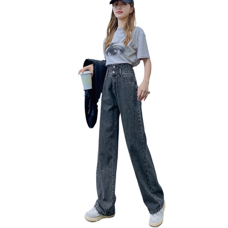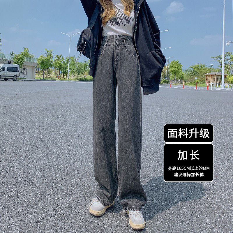 Главная страница > Легкая узкая версия тонкая широкая ножка джинсы женские 2025 новая весна лето с высокой талией свободные тонкие прямые штаны