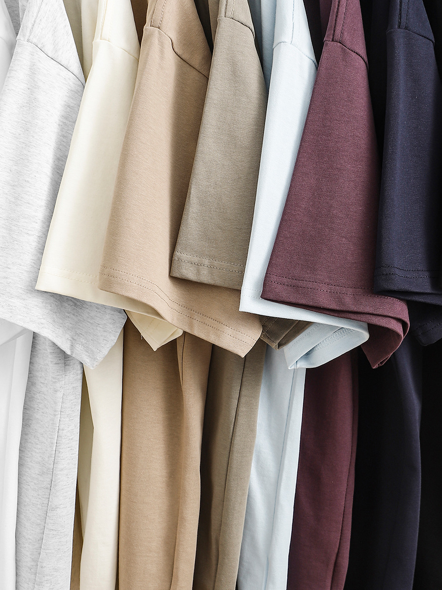 Главная страница > 260g хлопчатобумажная футболка мужская летняя свободная плечами, дикая цветная повседневная футболка с короткими рукавами и круглым вырезом