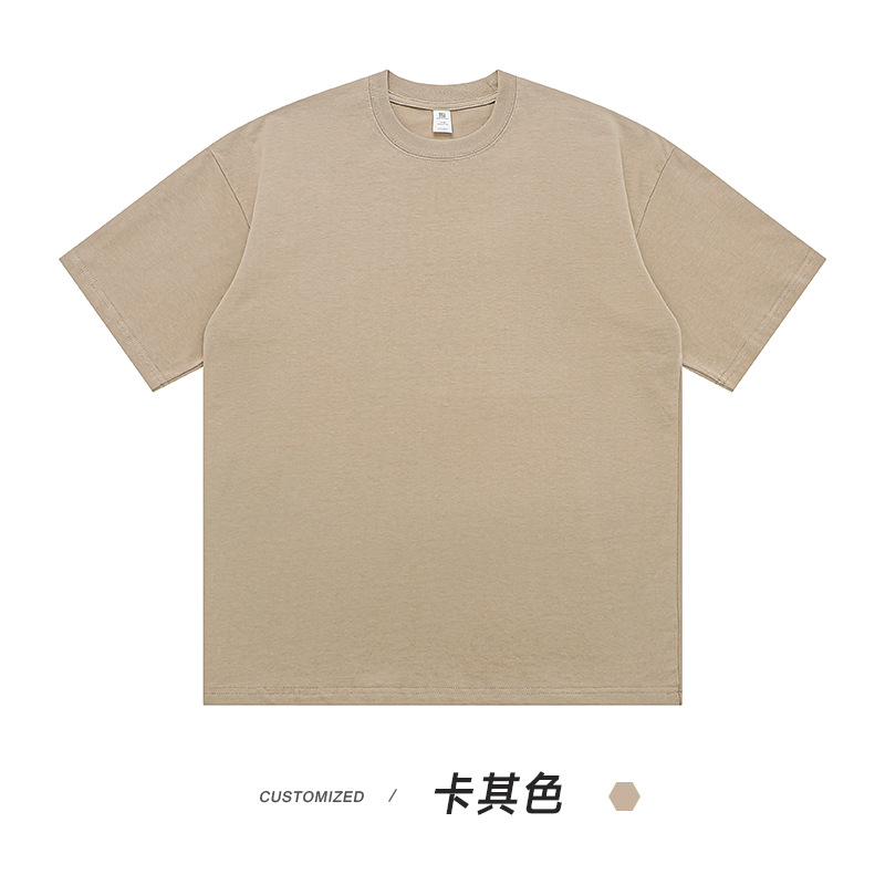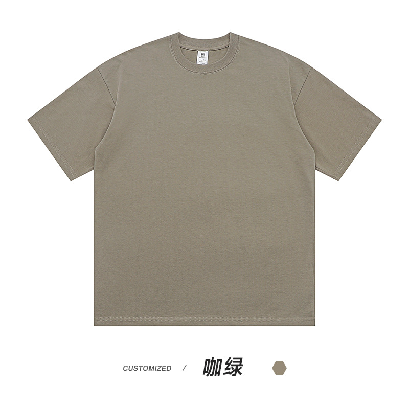 260g хлопчатобумажная футболка мужская летняя свободная плечами, дикая цветная повседневная футболка с короткими рукавами и круглым вырезом