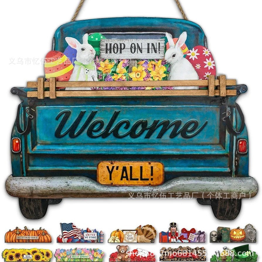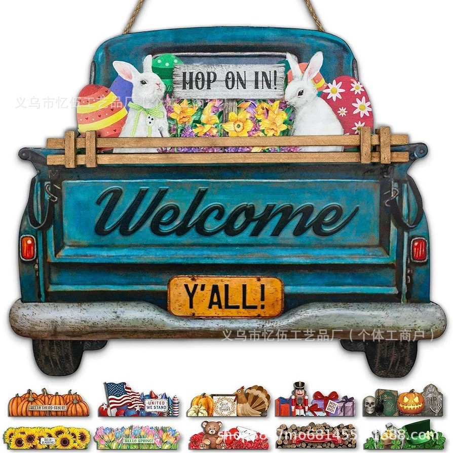 Деревянный декоративный набор в стиле фермерского дома: подвесные таблички, сменные сезонные декоративные таблички, подвесные украшения