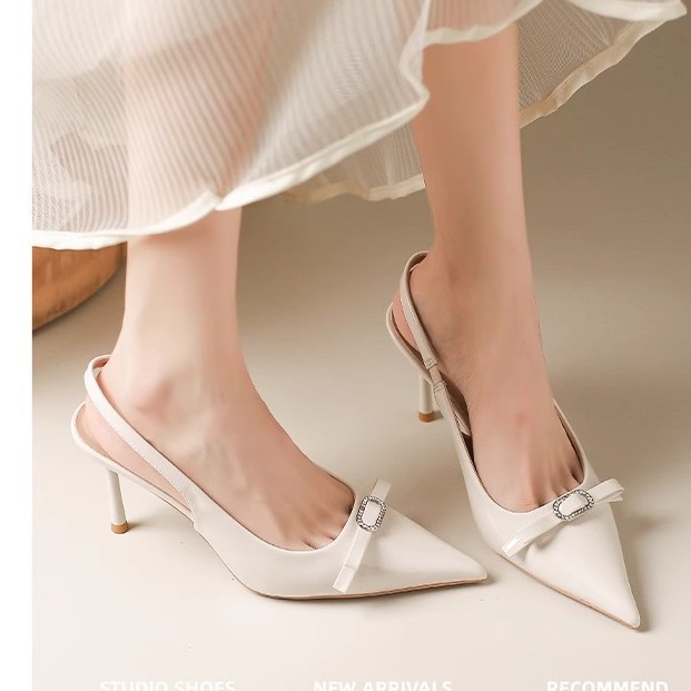 Весенне-летние женские туфли-лодочки во французском стиле, на шпильке, с острым носком, с бантом из страз, с открытым каблуком, закрытые сандалии, на шпильке с острым носком.
