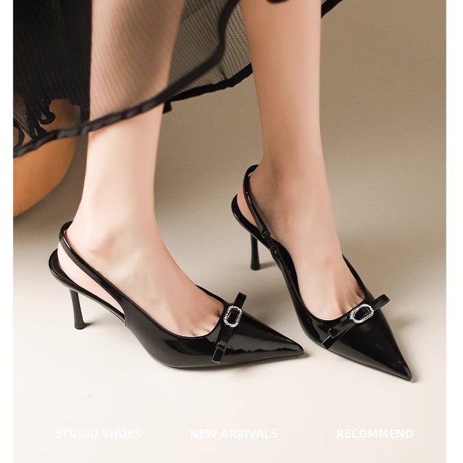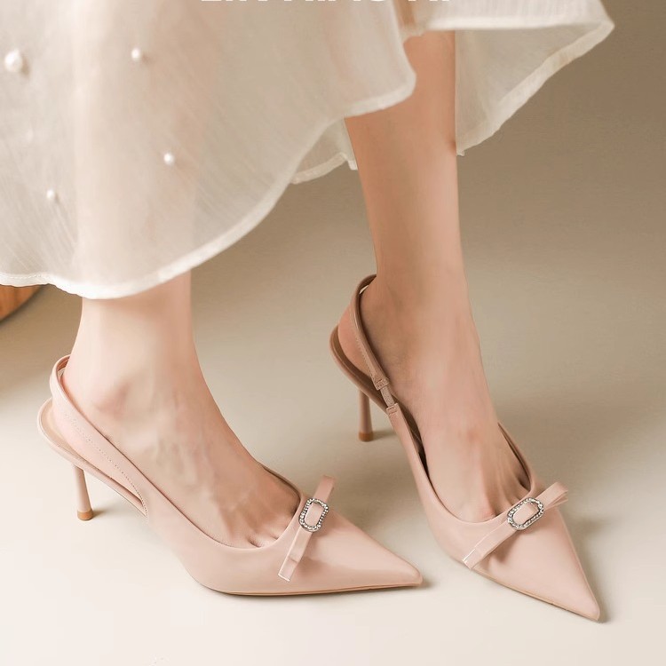 Главная страница > Весенне-летние женские туфли-лодочки во французском стиле, на шпильке, с острым носком, с бантом из страз, с открытым каблуком, закрытые сандалии, на шпильке с острым носком.