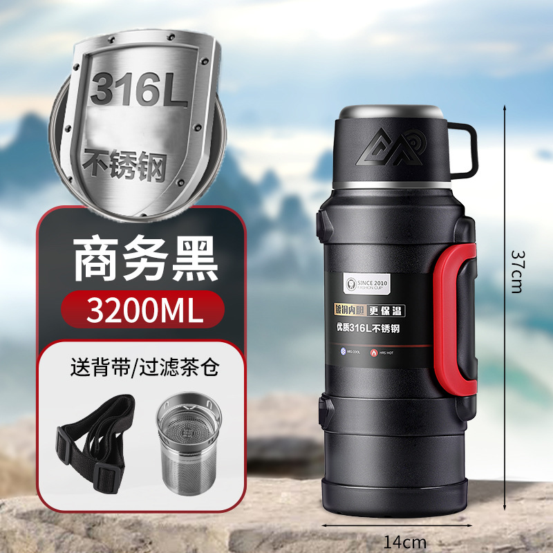 3200 мл, черный [медицинская нержавеющая сталь 316]
