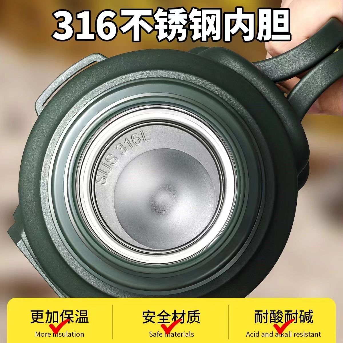 2000ML темно-зеленый [Медицинская нержавеющая сталь 316]