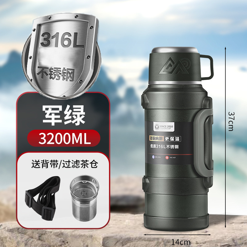 3200 мл темно-зеленый [медицинская нержавеющая сталь 316]