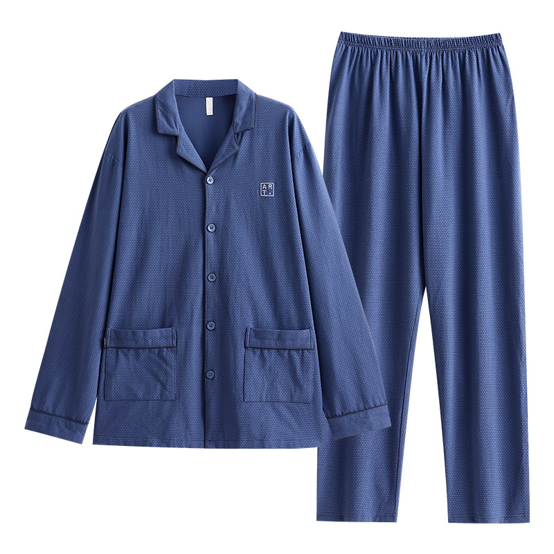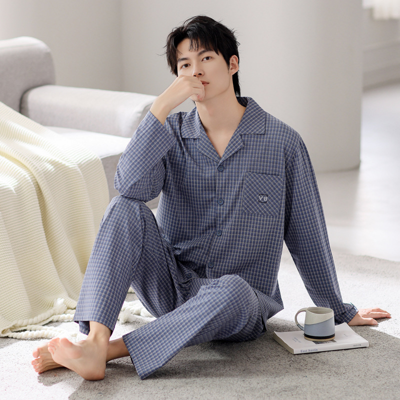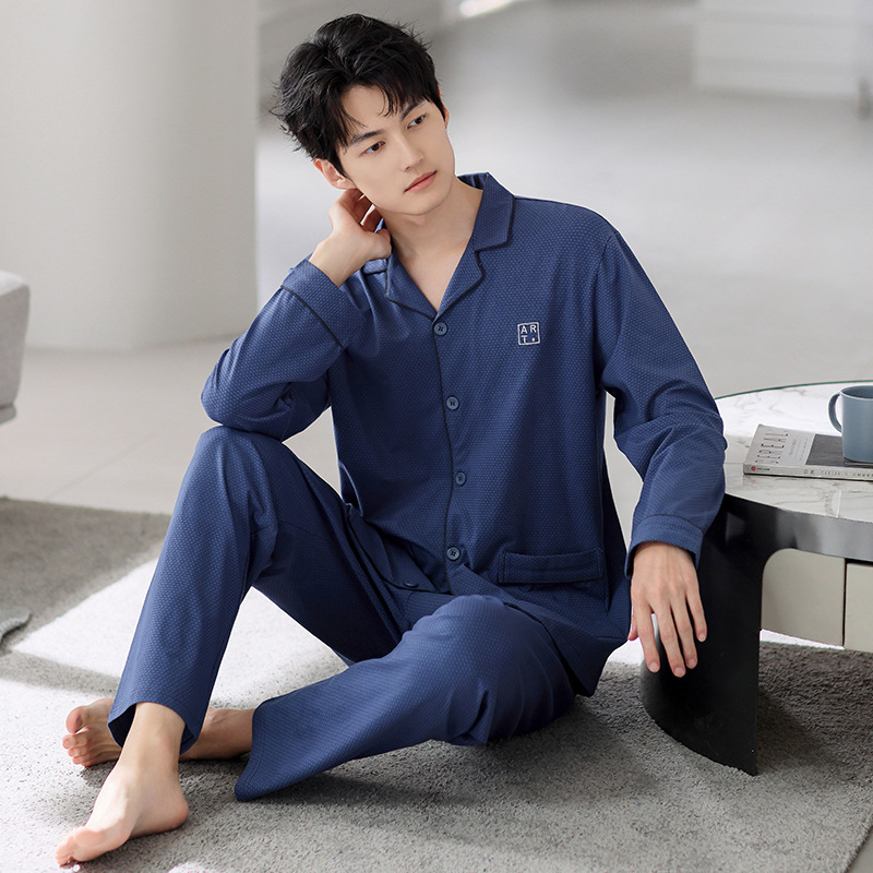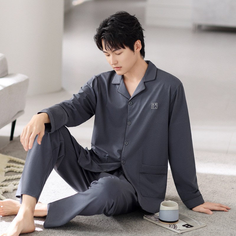 Пижама мужские осенние и зимние хлопковые с длинными рукавами большого размера тонкий набор весной и осенью свободный повседневный набор осенняя домашняя одежда
