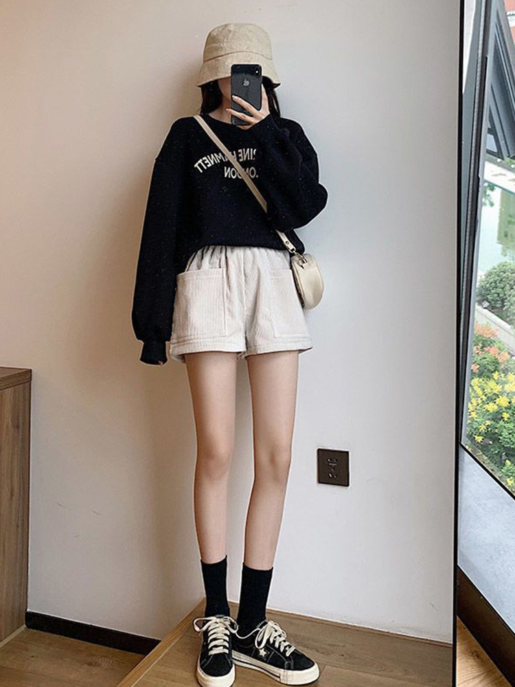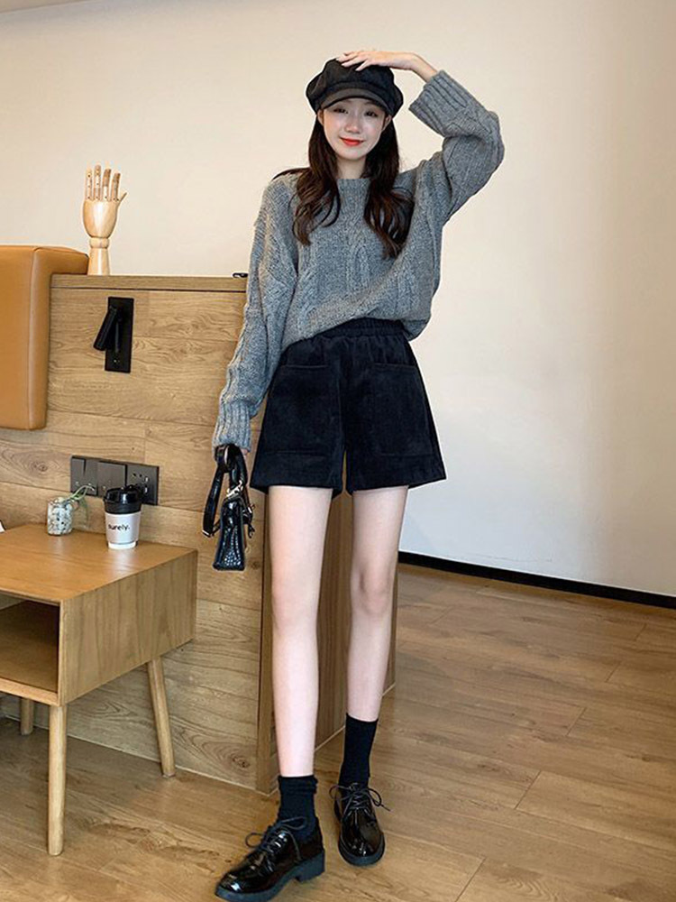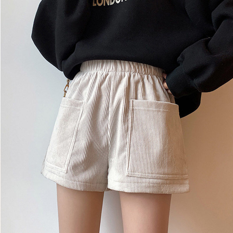 Главная страница > Осенне-зимние вельветовые шорты для женщин, свободный крой, корейский стиль 2025, на флисовой подкладке, широкие шорты-брюки, утягивающие, утолщенные шорты-кюлоты, повседневные брюки.